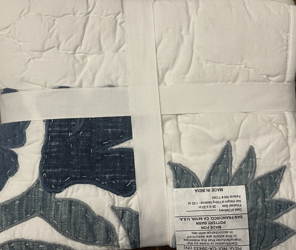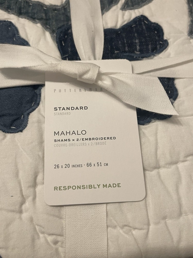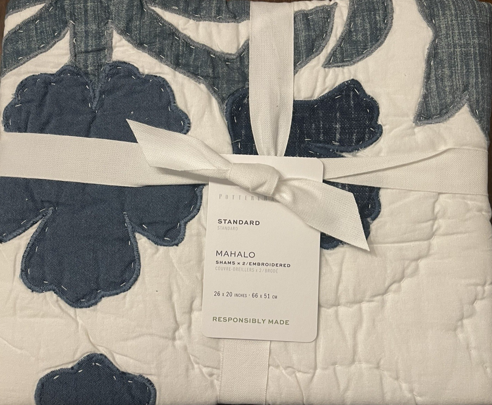 S/2 Set of (2) Pottery Barn Mahalo Cotton Applique Quilted STANDARD Shams - Blue NEW Condition: New with tags Size: Standard (20 x 26") Color: Blue Material: Made of 100% cotton. Secure Design: Quilted shams feature an envelope closure. Reversible Design: Reverses to solid. Hawaii, Hawaiian, Island, Coastal, Beach As always, this is an authentic PB item. 8.99 shipping to the U.S. Thank you for your interest!
