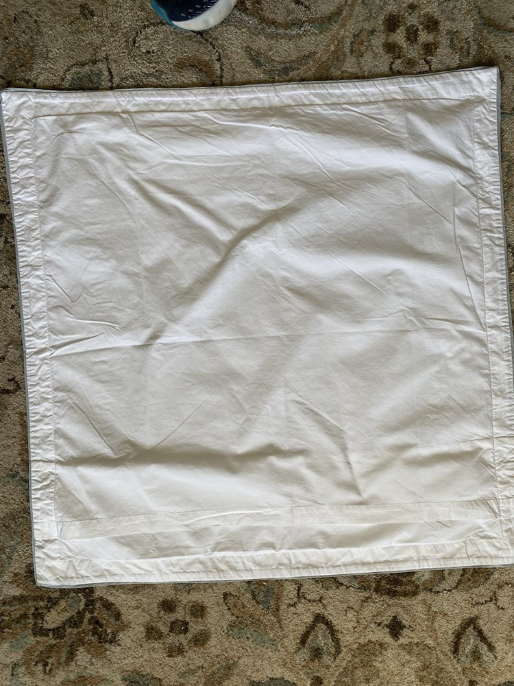 Bright white with sea foam Eucalyptus accents High Quality Italian Cotton Modern and elegant design Envelope enclosure Measures 28" square overall 25" insert size with 1.5" flange...