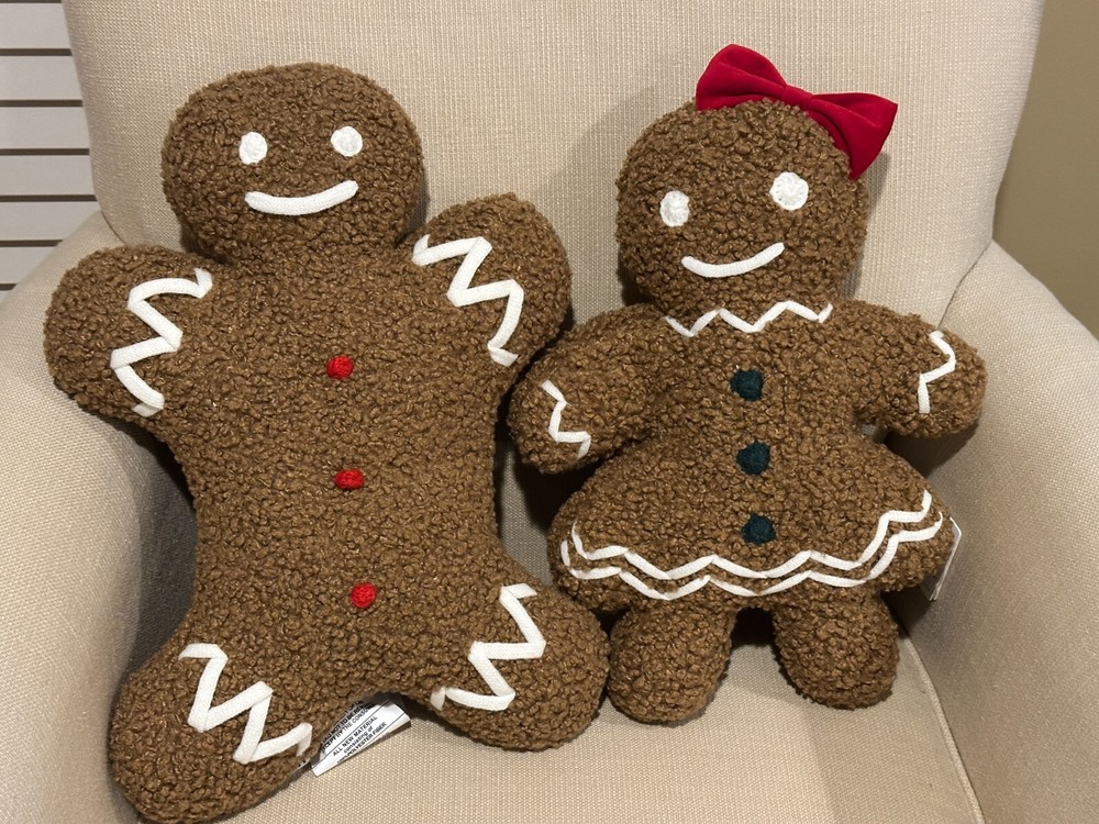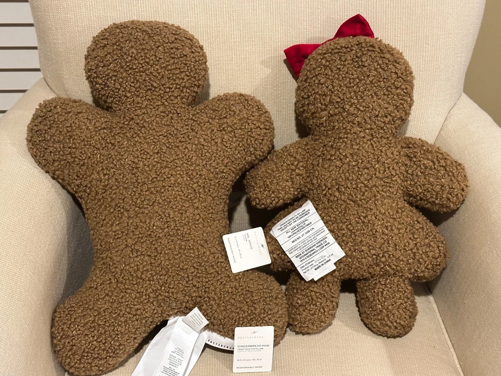 Set of 2 Pottery Barn Mr Spice & Ms Spice Shape Pillows NEW ***BOTH SOLD OUT*** Add a festive touch to your home decor with this Pottery Barn Ginger bread pair- Mr and Ms Spice Christmas Pillows. Made of 100% polyester, this pillow is both soft and durable. With its Christmas theme, this decorative pillow is a great addition to any home. brand name of Pottery Barn ensure that it will be a stylish and comfortable addition to any room. Get ready to impress your guests this holiday season with this adorable "Gingerbread pair" Christmas pillows. Coordinates with the other Pottery Barn Gingerbread themed pillows. - see my other listings for Ginger Spice Dog, Little Spice Ginger with candy cane, Orn-a-mint pillow and snowflake pillow Last photo show all the coordinating pillows from 2024 (not included)