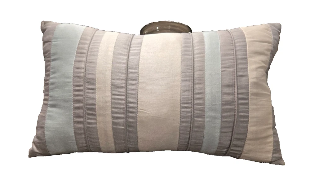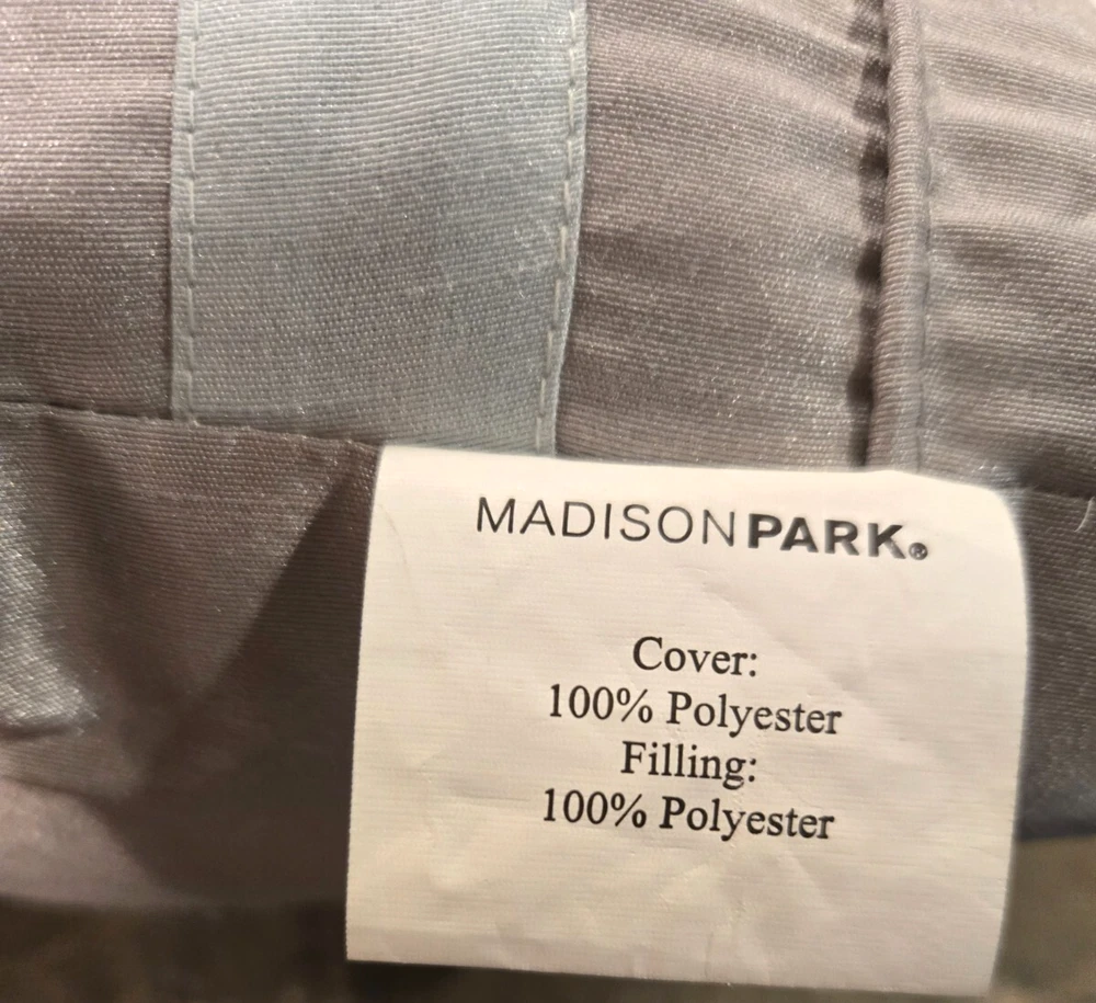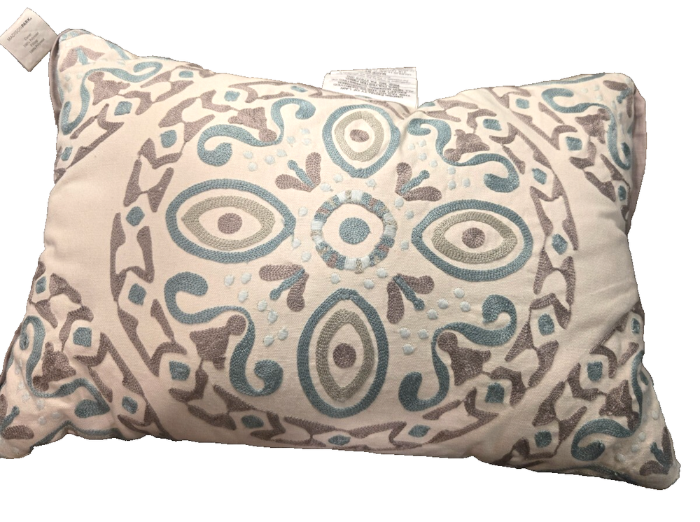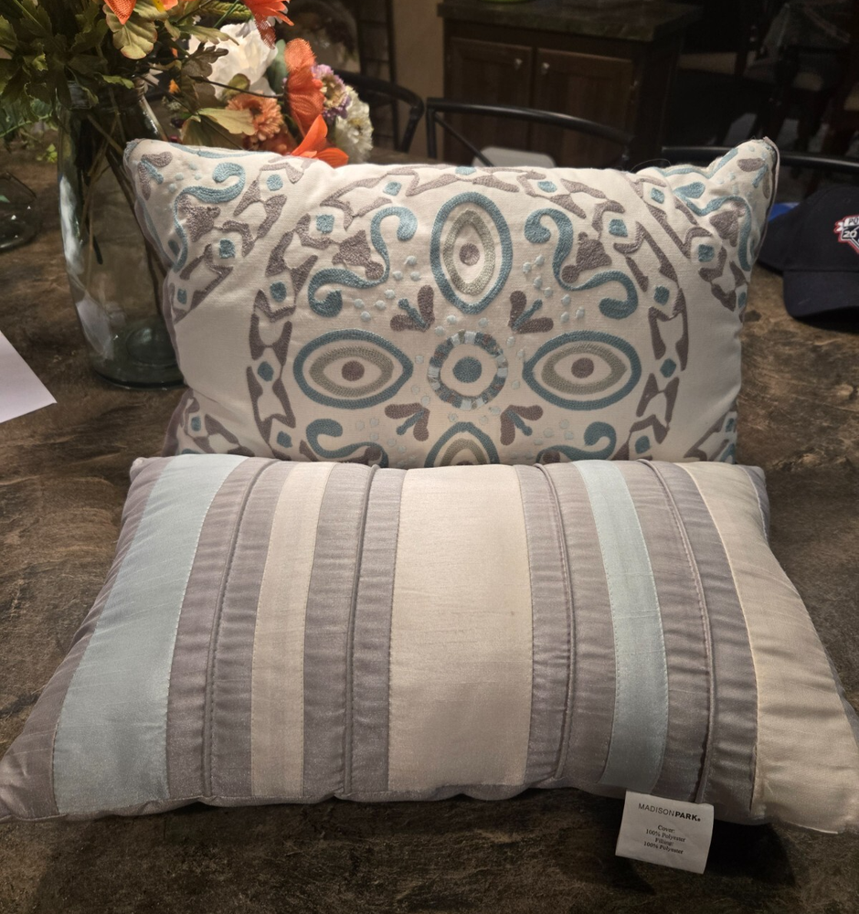 Elevate your space with the chic sophistication of the Madison PARK throw pillows. The abstract pattern in an elegant aqua, gray, and cream color palette brings a touch of fashion to any room. Expertly crafted from 100% polyester, these pillows are adorned with intricate embroidery, adding a handcrafted look to your decorative accents. The set includes two pillows, one measuring 11 x 19 inches and the other 13 x 20 inches, perfect for coordinating your living area or bedroom. Their rectangular shape and solid color make them versatile for both indoor settings and modern aesthetic themes. Whether you're accenting your couch or adding flair to your bed, these pillows are sure to complement your style with ease. One Pillow Threshold Brand