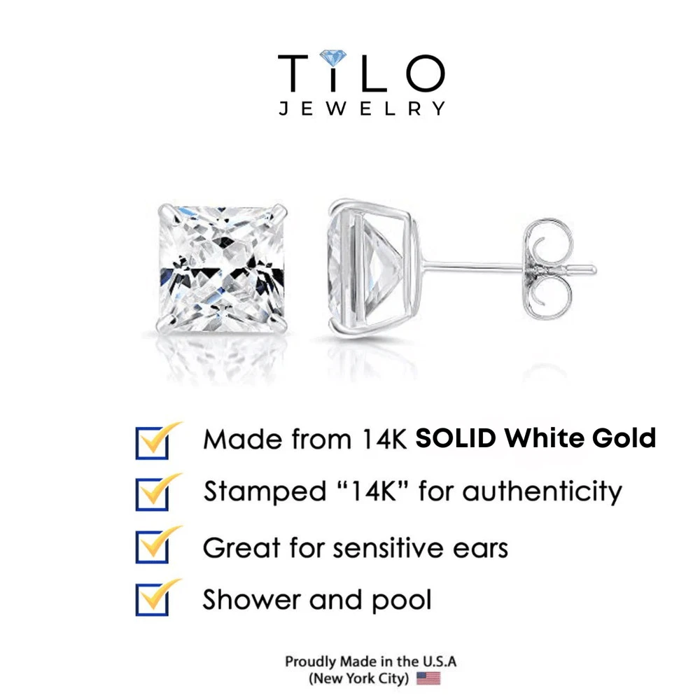 Our eBay Store SET OF 3! 14K Solid Gold Earrings, Square Studs with Cubic Zirconia Stones and 14K Solid Gold Butterfly Push-backings Details: ---------- Details ---------- ◆ Made from authentic 14K SOLID gold to last a lifetime ◆ Available in White Gold or Yellow Gold ◆ Sizes : 3mm, 4mm, 5mm (total 6 earrings) ◆ Properly stamped "14K" for authenticity ◆ Our butterfly push-backs are comfortable and very secure ◆ Free Insured Shipping + Ships within 24 hours + Free 30 day returns! ---------- About TILO Jewelry ---------- We are a family business located in the heart of New York City. Our roots started in 1994 with our father's gold hoop factory in Manhattan. Today you can find our jewelry in all of Asia, Africa, North and South America, Europe, Australia...…we have thousands of happy customers all over the world! Aside from working with leading jewelry makers around the globe, we also produce our own line of gold hoop earrings. Each hoop is handmade with love and attention to detail. One purchase and you will instantly feel the level of quality and professionalism we bring. Jewelry made by us, coming straight to your door. We take pride in having the best quality hoops on the market and have been mastering our craft for over 25 years. Thank you for choosing Tilo Jewelry. We will continue to play a key role in the jewelry industry and provide you the best value for your hard-earned money! Follow us on social media @tilojewelry Powered by Valigara Jewelry Manager