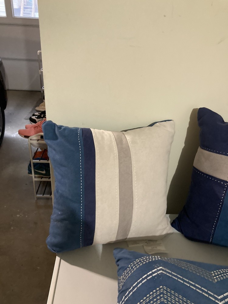 Set of 3 throw Madison Park pillows (blue/grey/beige). Great condition…… smoke free home………ship within 2 business days…. 18x18 16x16 12x18...