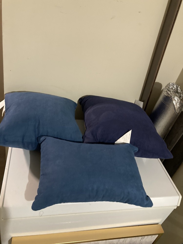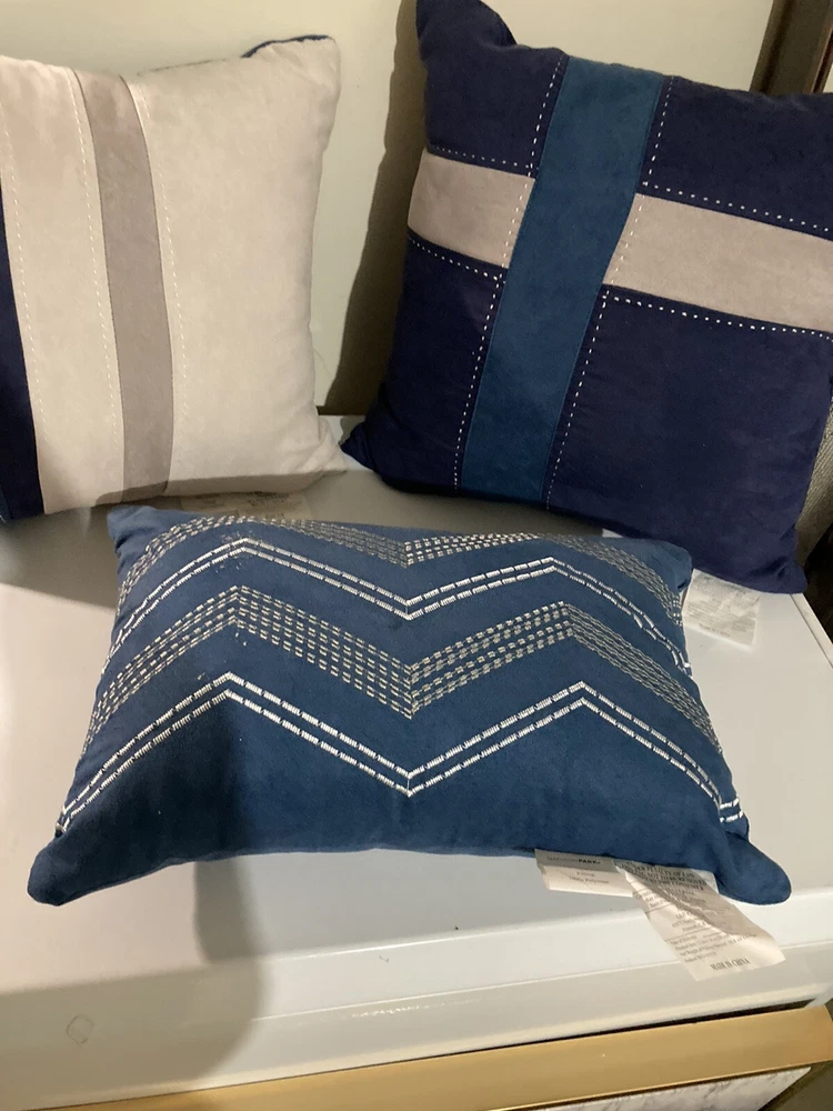 Set of 3 throw Madison Park pillows (blue/grey/beige). Great condition…… smoke free home………ship within 2 business days…. 18x18 16x16 12x18