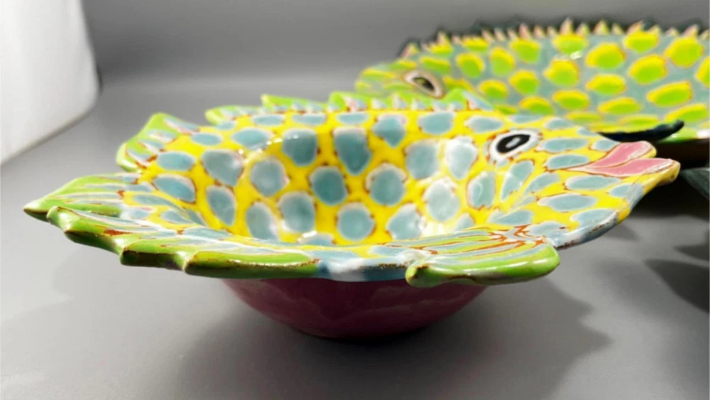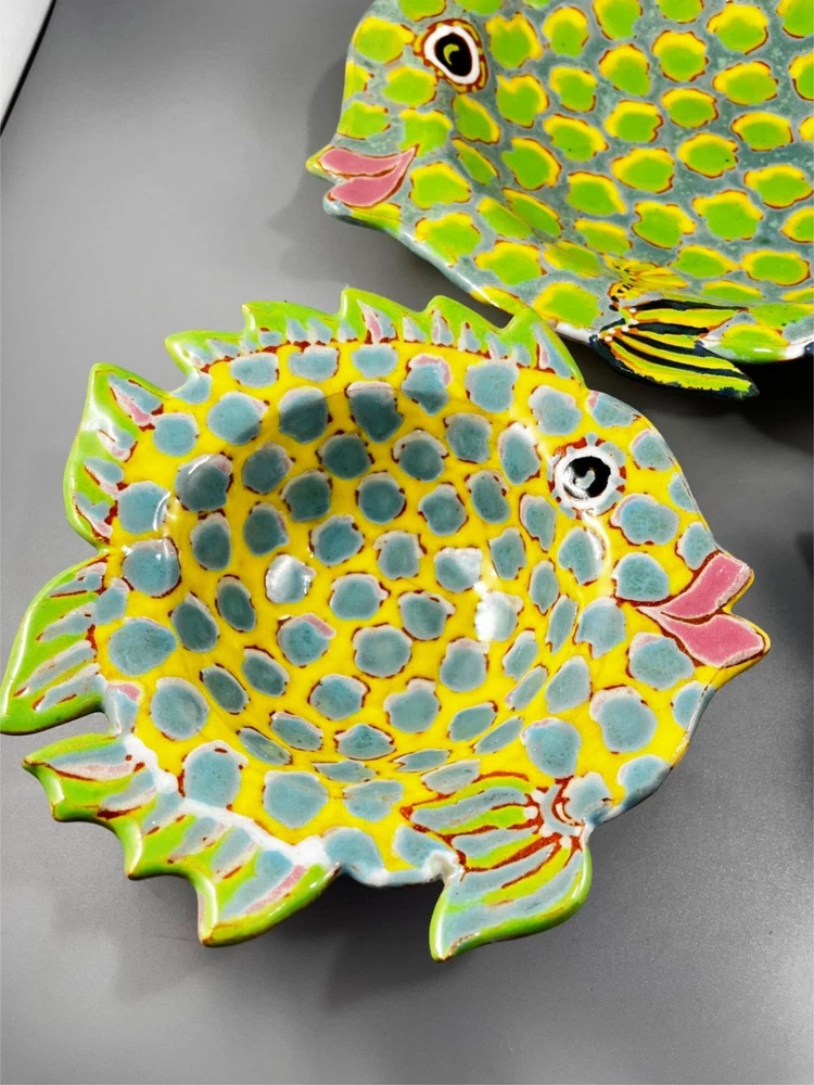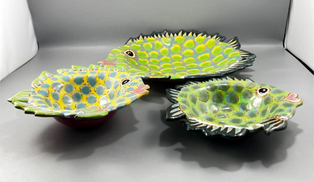 Set of 3 Pegeen Souter Studio Pottery Fish Shaped Serving Platter & Bowls Set of 3 Pegeen Souter Studio Pottery Fish Shaped Serving Platter & Bowls Up for sale is a Set of 3 Pegeen Souter Studio Pottery Fish Shaped Serving Platter & Bowls Great condition without chips or cracks. Please see all the photos as they are a major part of the description and they show the exact condition of the item. Payment Terms Payment is required within 3 days of auction ending date or at time of purchase. Shipping Terms I ship via USPS Monday through Friday and require 1 day handling. If you have any special shipping request, please contact before payment. I ship to the address listed in your PayPal account. < Listing and template services provided by inkFrog