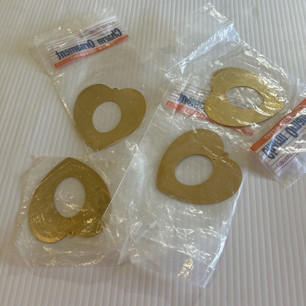 Add some vintage charm to your holiday decor with this set of 4 heart-shaped charm ornaments from Sears Portrait Studio. The gold and brass material and heart pattern make them perfect for any lover of hearts. Measuring 3 inches in length, width, and height, these small ornaments are ideal for adding a touch of elegance to your tree or other holiday