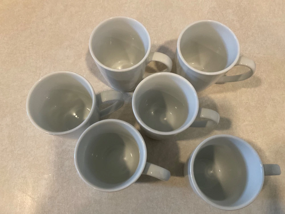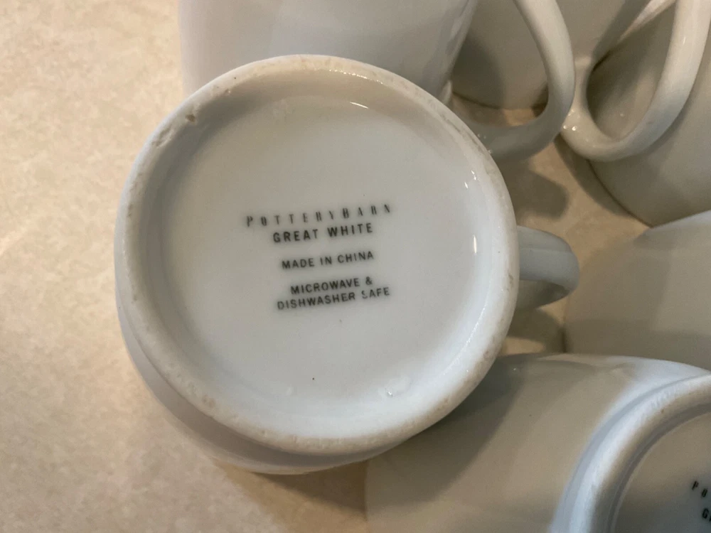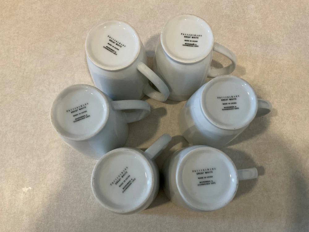 Add a touch of elegance to your morning routine with this set of six Pottery Barn Great White coffee mugs. The footed cup design gives it a sophisticated look, while the solid white color complements any table setting. Made of high-quality materials, these mugs will last for years to come and are perfect for all occasions. Whether you're sipping on coffee or tea, this mug set is a must-have for any home.