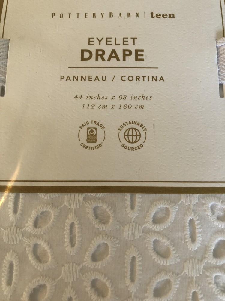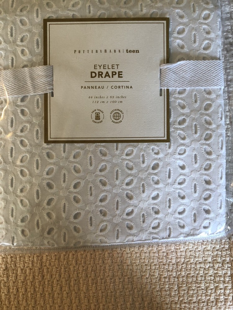 Set of 2 Pottery Barn Teen pole top Eyelet drapes Set of two panels 44x 63 color: White Absolutely Gorgeous!! New with tags. Shipped with USPS Priority Mail Sold out online & in stores