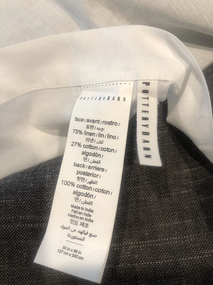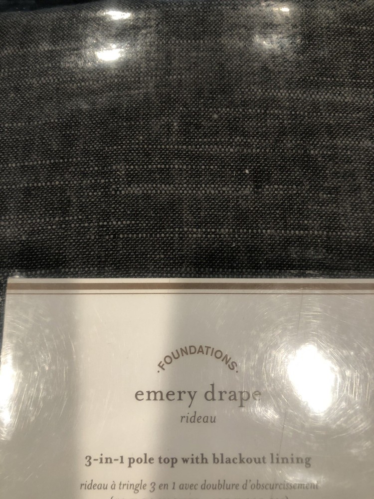 Set of 2 Pottery Barn Emery 3 in 1 pole top Drapes 50 x 96 set of two panels 73% Linen 27% Cotton 100% Cotton lining Dry Clean Color Grey Absolutely Gorgeous!! New with tags. Shipped with USPS Priority Mail Retail $390 *note these are brand new never used however there is no packaging as I bought them off the store display.