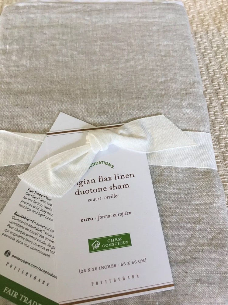 Pottery Barn Belgian Flax Linen duo tone Euro Shams set of two taupe/white Absolutely Gorgeous!! New with tags.