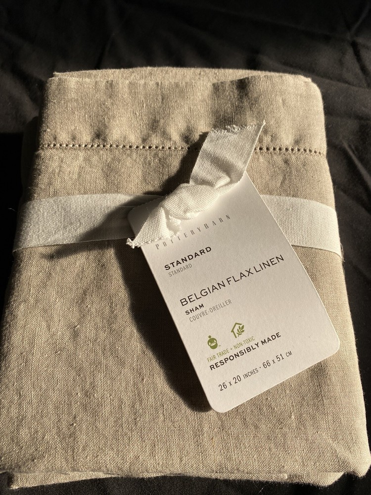 Pottery Barn Belgian Flax Linen standard Shams set of two Standard 26 x 20 Color: khaki green Absolutely Gorgeous!! New with tags. Shipped with USPS Priority Mail