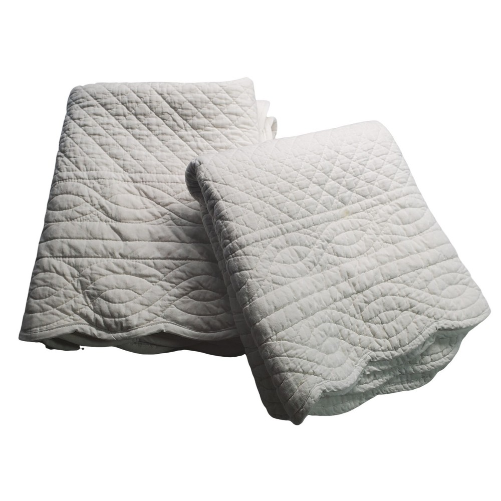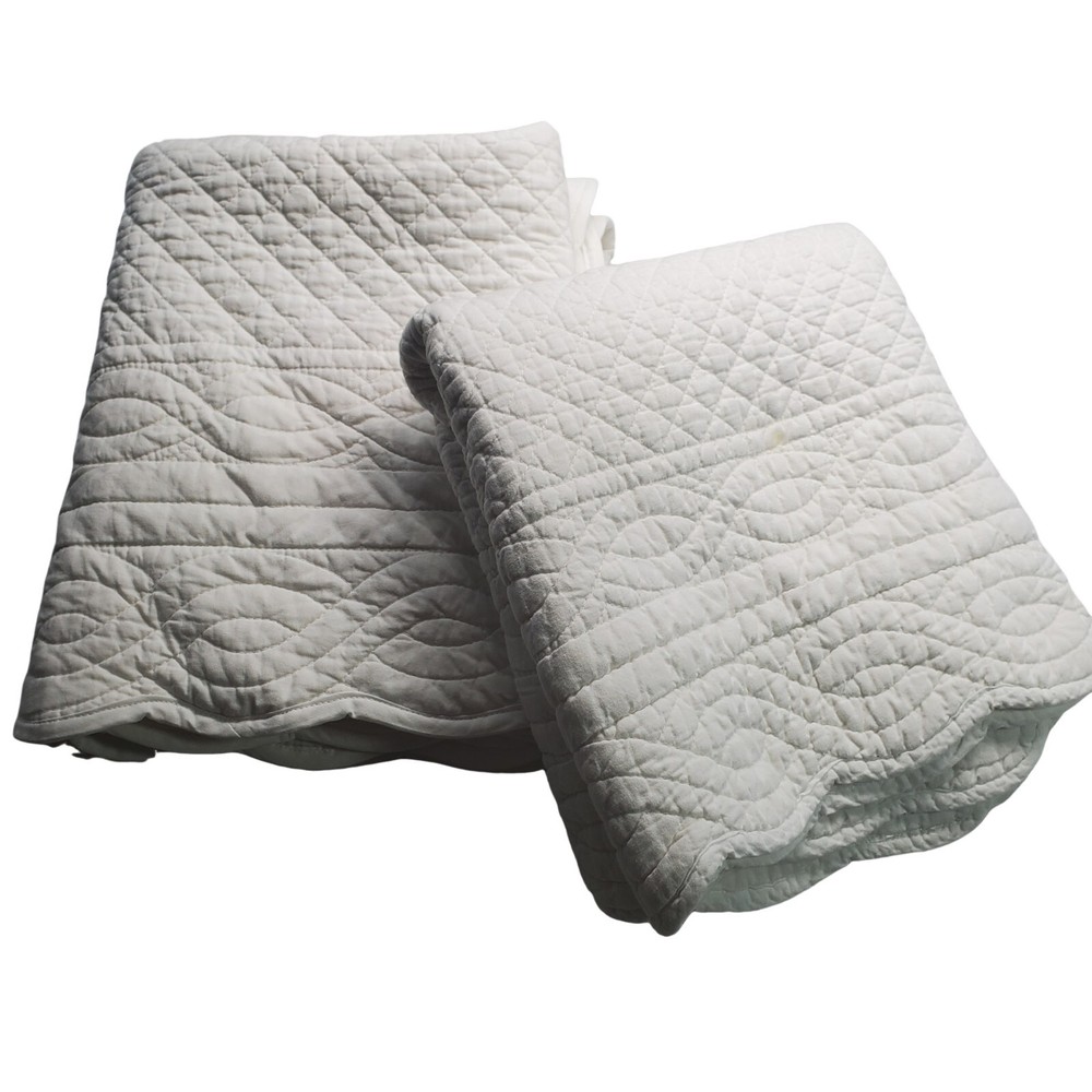 One of these shams has been washed. There are a few tiny pin sized spots on each. The other sham looks brand new....
