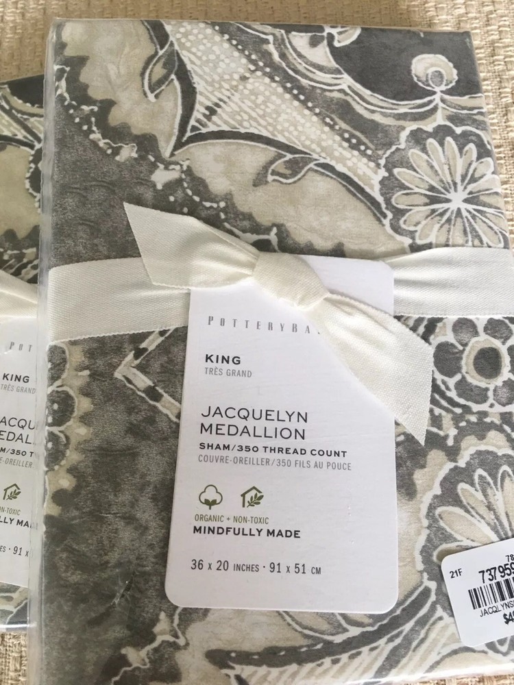 Pottery Barn Jacquelyn king sham set of two Multicolored ..Gray Absolutely Gorgeous!! New with tags. Shipped with USPS Priority Mail Retail $100