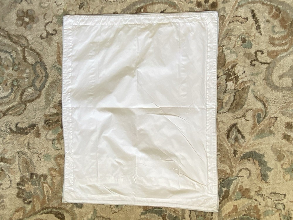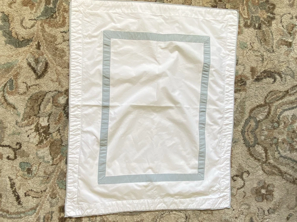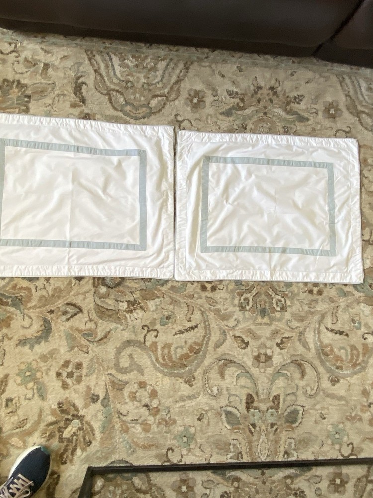 Bright white with sea foam/eucalyptus piping and accent High Quality Italian Cotton Modern and elegant design Envelope enclosure (See my listing for Morgan Euro shams. Bundle and SAVE!) Measures 20" x 26"