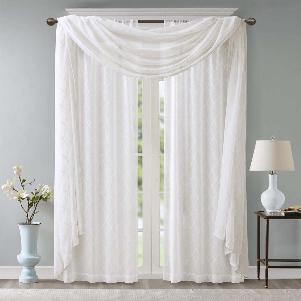 Madison Park Irina 50 X 216 Embroidered Diamond Sheer Window Curtain Scarf White