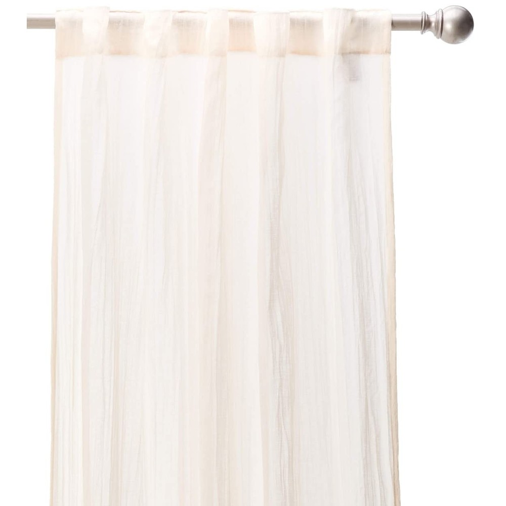 DESIGN - Lightweight sheer fabric, add a fresh contemporary style to your home with crushed detailing for texture FUNTION - Panel pair is easy to drape and softly filters the perfect amount of light into your room INCLUDE - 2 Pairs of Sheer panels , 42x95 inches Simply hang this sheer panel pair with the rod pocket top or use the back tabs for a more tailored finish to your décor Machine Washable, easy to keep the panels clean and hypoallergenic