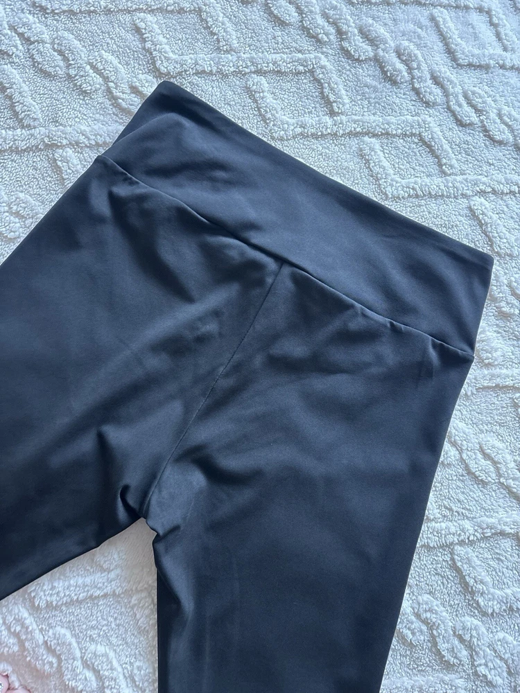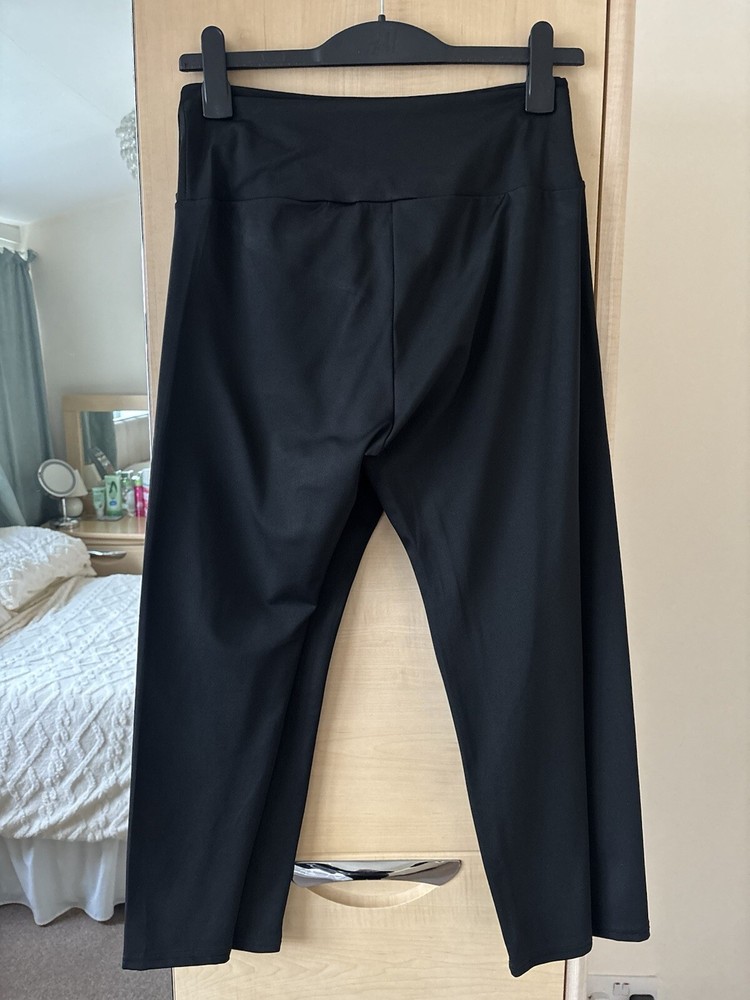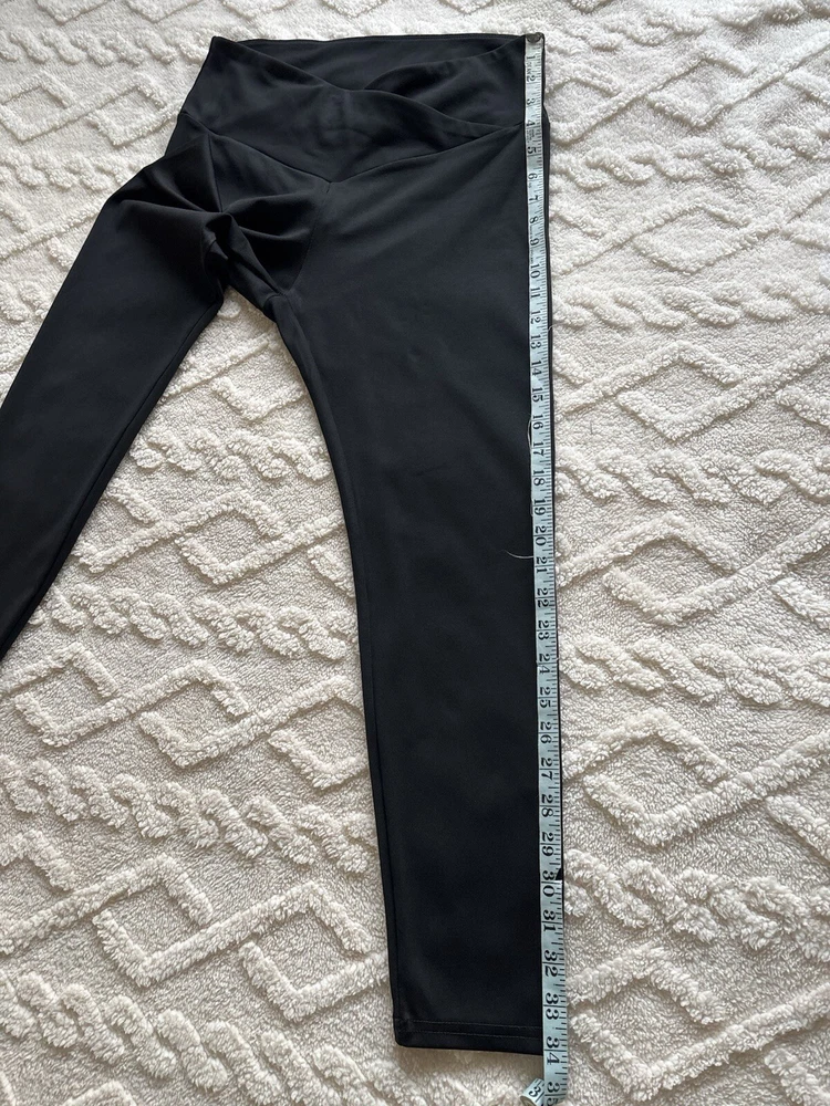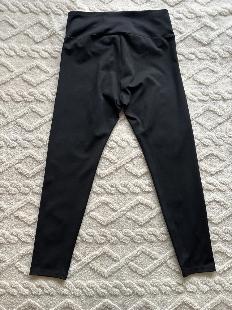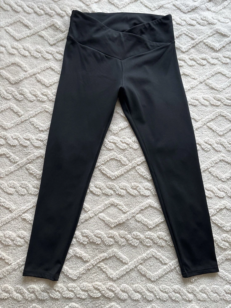 These Shein Sport Studio V Shaped Cross Waistband Leggings come in a 2 pack in ladies size L. The leggings feature a unique V-shaped waistband design, made of lightweight and breathable black polyester and elastane microfibre fabric. With a comfortable elastic waist and stretchy material, they are suitable for travel, activewear, and casual wear, perfect for walking, yoga, and pilates in all seasons. Machine washable for easy care. According to the website, size L is equivalent to a UK size 12/14 See photos for measurements