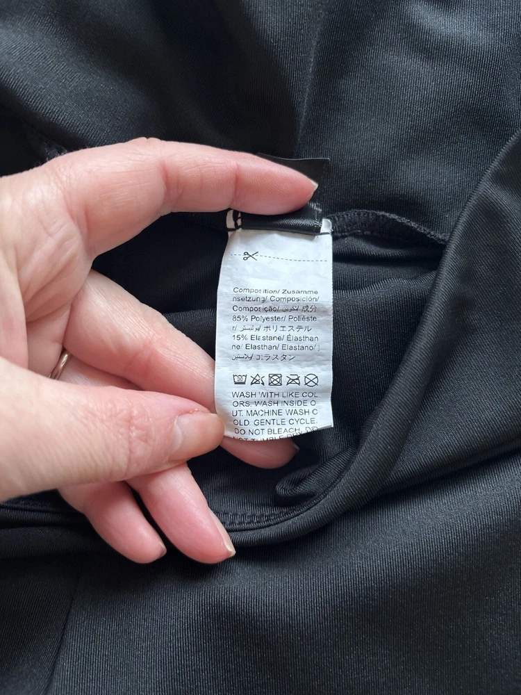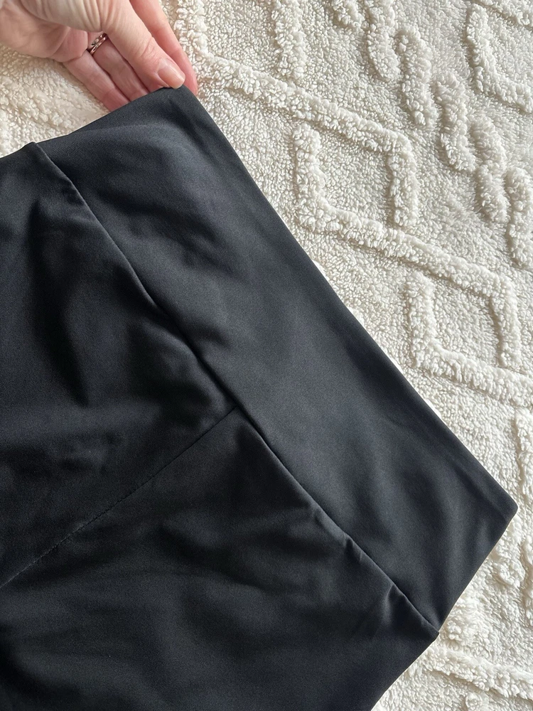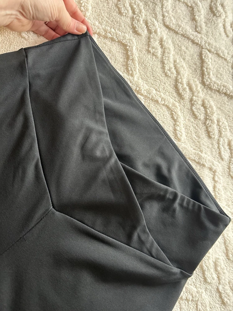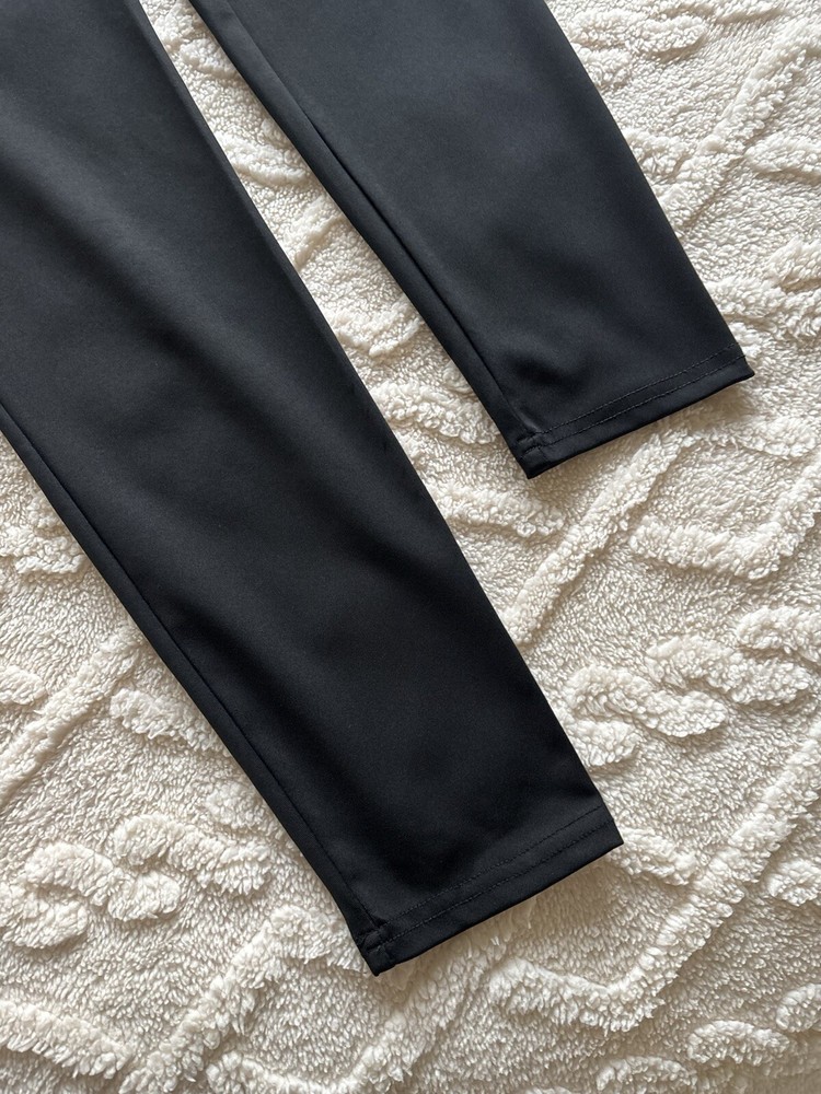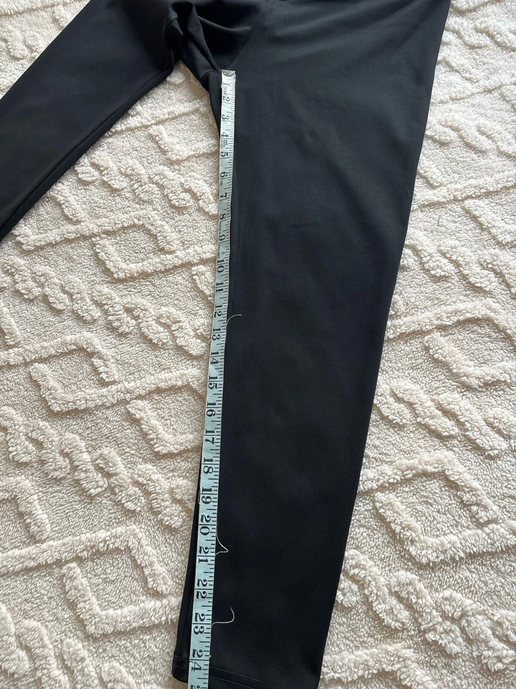 These Shein Sport Studio V Shaped Cross Waistband Leggings come in a 2 pack in ladies size L. The leggings feature a unique V-shaped waistband design, made of lightweight and breathable black polyester and elastane microfibre fabric. With a comfortable elastic waist and stretchy material, they are suitable for travel, activewear, and casual wear, perfect for walking, yoga, and pilates in all seasons. Machine washable for easy care. According to the website, size L is equivalent to a UK size 12/14 See photos for measurements