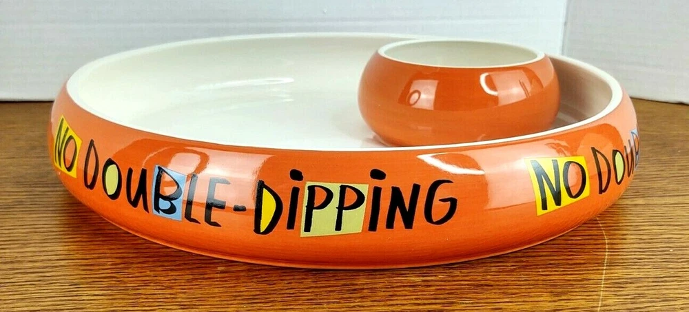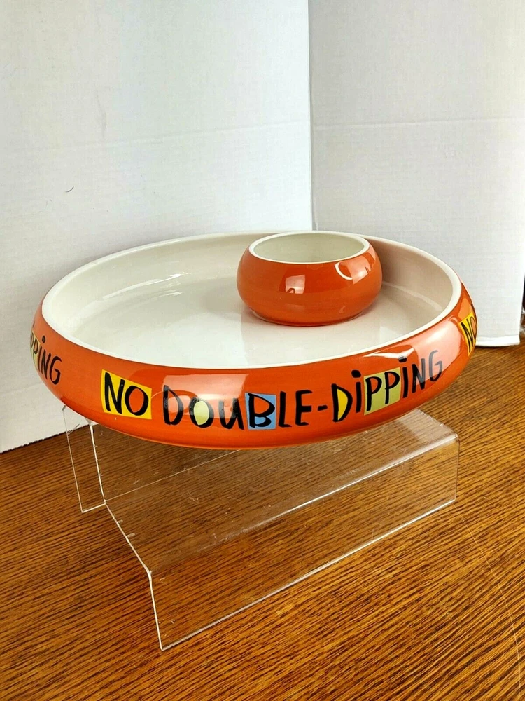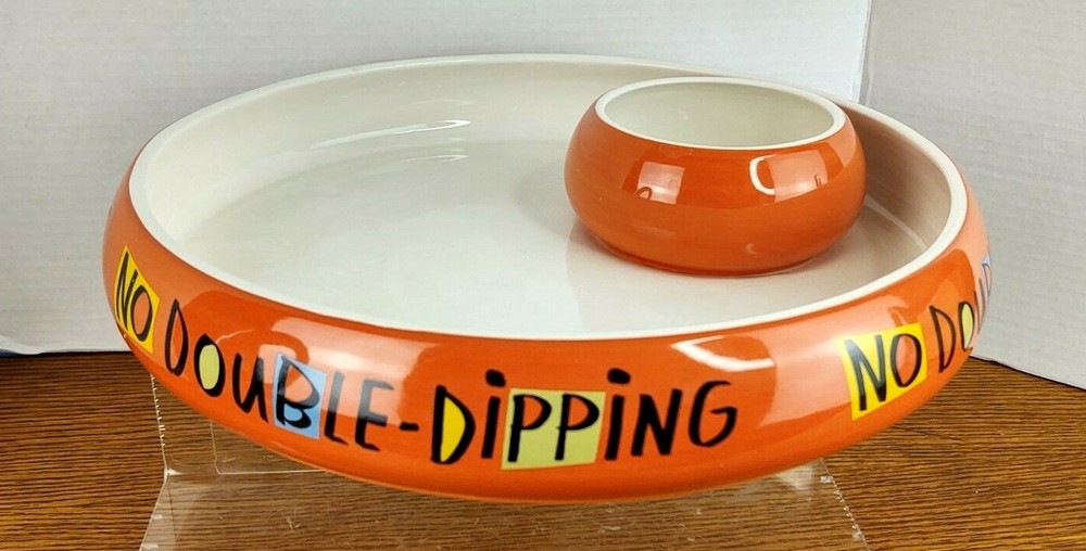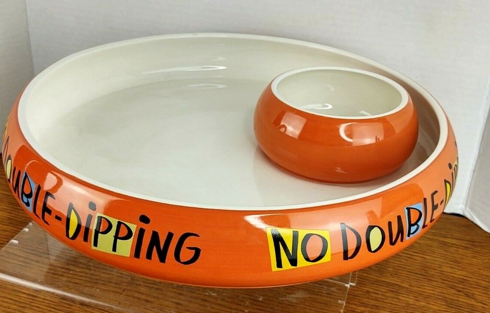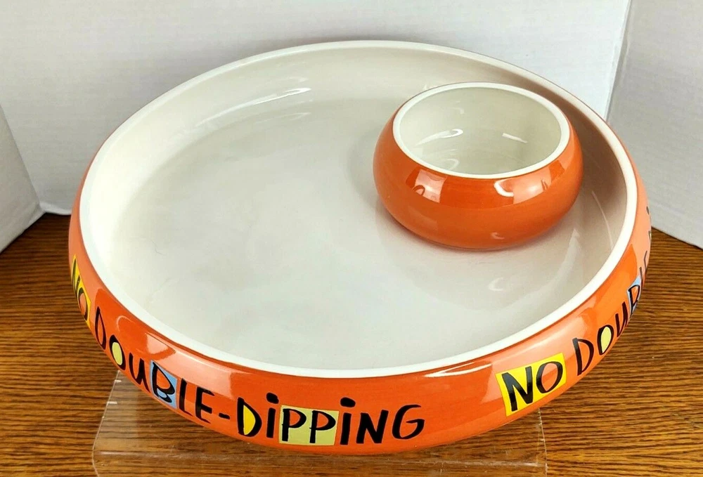 SHIPPING TIME: We ship all items within one business day of your payment clearing (excluding weekends and holidays) RETURNS; We accept any item back within 30 days of purchase date for a full refund. All returns must come back in the same condition they were shipped out and arrived in. FEEDBACK: We aim to earn positive 5 star feedback for every item. If your happy with your purchase please take a minute to leave positive 5 star feedback. if you have any issues with your purchase please contact us directly using e-bays message service to resolve the issue so that we can earn your 5 star positive feedback. ShoeBox Hallmark Halloween "No Double Dipping" Dip Bowl Serving Tray Bowl is in Great Condition no chips or Cracks, little bit of Crazing in the Large Bowl, there's a little mark underneath the dip bowl But what a fun Serving dish or large Candy Bowl Non Smoking Home Check out sellers other items listed daily Click Here To Visit Our Store!
