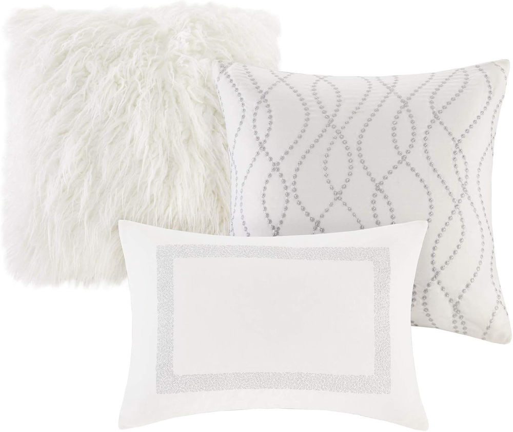 Store New Arrivals Add to Favorite View Feedback Contact Signature Glam Cozy Comforter Set - All Season Bedding Combo Filled Insert and Removable Duvet Cover, Shams, Decorative Pillows, Metallic White King(110"X96") 10 Piece Description Item model number MPS10-311 Style Luxurious style Assembly required No Pattern Striped Country of Origin China Theme Modern Number of Pieces 10 Specifications certified frustration-free Product Dimensions 96 x 110 x 1.5 inches Material Fabric Seasons All Is Discontinued By Manufacturer No Included Components 1 Comforter, 2 King Shams, 3 Euro Shams, 3 Decorative Pillows Item dimensions L x W x H 96 x 110 x 1.5 inches Perfume Unscented Item Weight 25.2 pounds Color Hollywood Glam, White Global Trade Identification Number 00086569897077 Batteries required No Refill polyester Manufacturer Signature Fabric Type 100% Polyester Size King(110"x96") 100% Polyester The Madison Park Signature Hollywood Glam Comforter Set offers a modern and elegant update to the bedroom. The oversized and overfilled comforter uses and includes a removable duvet-style insert that is secured by inner ties and a hidden button closure. The comforter comes with a removable duvet cover and the decorative pillows have removable cover with hidden zipper that makes them easy to clean. MEASUREMENT - 1 Duvet Cover - 110(W) inches x 96(L) inches, 1 Comforter - 110(W) inches x 96(L) inches, 2 King Shams - 20(W) inches x 36(L) inches + 2 inch flange each, 3 Euro Shams - 26(W) inches x 26(L) inches each, 3 Decorative Pillows - 20(W) inches x 20(L) inches/ 20(W) inches x 20(L) inches/ 14(W) inches x 20(L) inches Care instructions: Machine wash cold, gentle cycle, and separately. Do not bleach. Tumble dry low, remove promptly. Do not iron. Spot clean pillow. If there is no free movement in the washer or dryer, use large capacity commercial washer/dryer. The Madison Park Signature Hollywood Glam Comforter Set offers a modern and elegant update to the bedroom. This jacquard comforter flaunts an all-over metallic detailing on the luxurious white base, for glamorous allure. Coordinating shams mirror the motif of the comforter and the Euro shams feature a rich cotton velvet face with embroidered details. Three decorative pillows are embellished with unique embroidery and texture, adding dimension and glam to this lavish comforter set. The oversized and overfilled comforter uses and includes a removable duvet-style insert that is secured by inner ties and a hidden button closure. This provides no visible bartacking lines on top of the bed to create a smooth, clean face. Dry clean comforter cover only and machine wash comforter filler. This bedding set is OEKO-TEX certified, meaning it does not contain any harmful substances or chemicals, ensuring quality comfort and wellness. ABOUT US We offer the best prices around on high quality products. Our E-store includes media such as books, movies, music and games while offering electronics, toys, sporting apparel, clothing, tools, general home, garden items and more. SHIPPING We are always working hard to ensure your package arrives as soon as possible. Please understand that some factors like weather, high postal traffic, and the performance of shipping companies are outside of our control. We offer free shipping to the lower 48 states and ship within 2 business days of payment, usually sooner. We do not accept P.O. Boxes. Please provide a physical address. For shipping outside of the continental USA, we only use eBay's Global Shipping Program.The item is shipped to KY and then sent to the rest of the world. International customers are responsible for all duties and taxes. Continue to check out in order to calculate costs for shipping the item to your country. Messages regarding eBay's Global Shipping Program MUST be directed at eBay EXCLUSIVELY. RETURNS We offer a 30-Day Return Policy on items which you are not completely satisfied with. You have the option for a full-refund or an exchange of the item. No returns are available on items shipped outside of the USA. PAYMENT We accept PayPal. CONTACT US This page content is yet to come Please ad us to your favorite seller and visit again later Thank You CUSTOMER SATISFACTION We try our very best to make sure every customer is completely satisfied. If there's a problem, message us! We're happy to help.