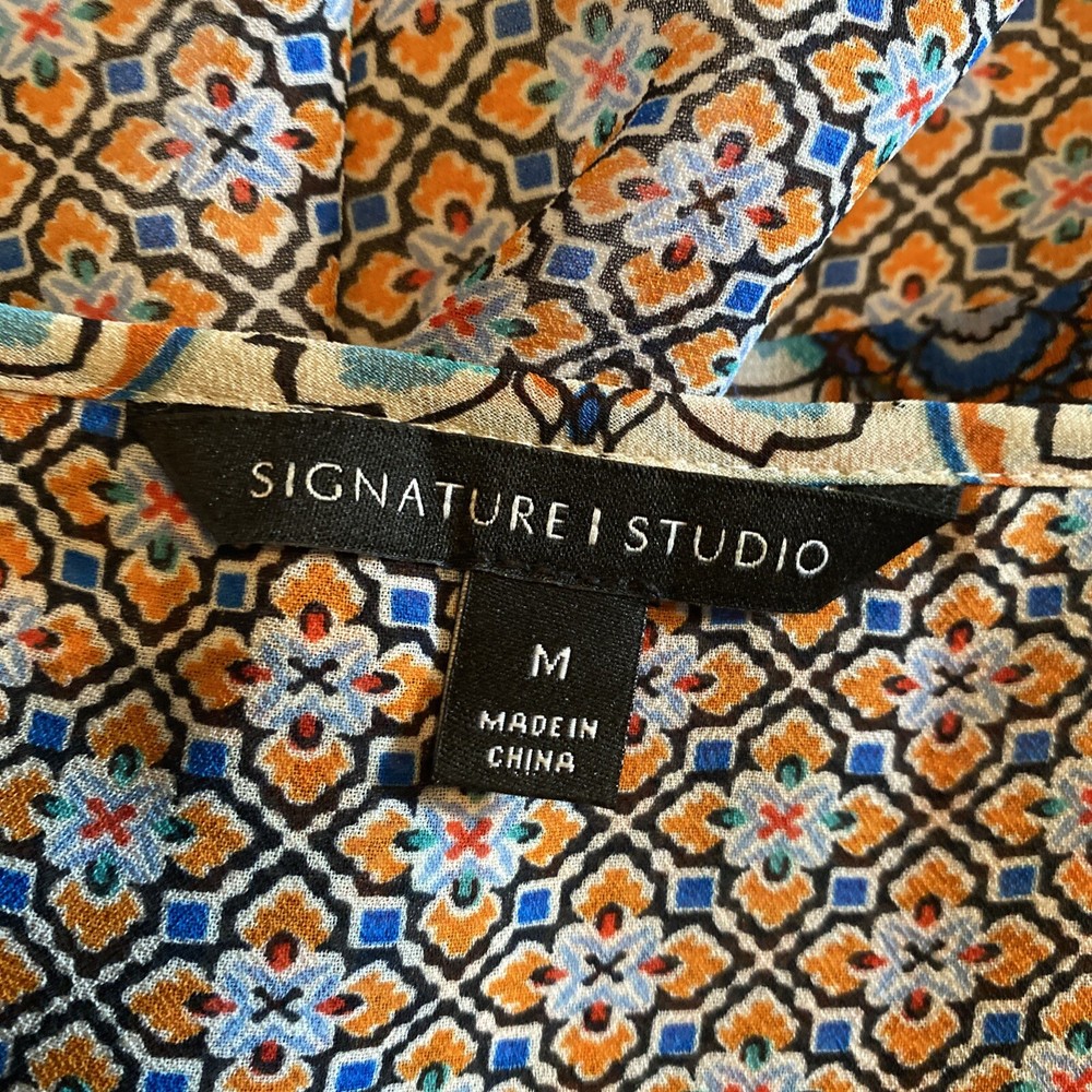 Signature Studio Crochet Lined Dress Size Medium. Gently worn condition Approx Measurements 19” Waist 14” - 18” elastic- laying flat across Sleeves 24” can roll and has button and tab Length 39” Smoke Free 2313 Thanks for Stopping by! Items will be shipped within 1-2 business days after payment. Shipping discount is available for multi-quantity orders - send a message once added to your cart. All inventory is stored in smoke-free and pet free environment. All pre-owned clothing has been washed and some are also steamed. New inventory added daily. If you see something you love, thank you for your purchase!