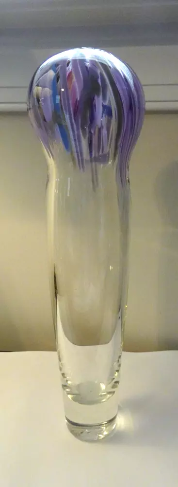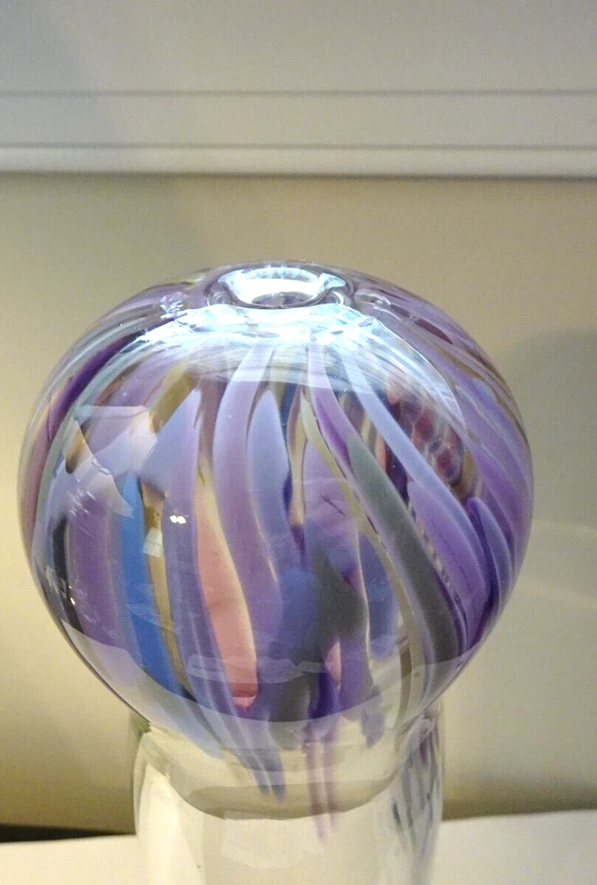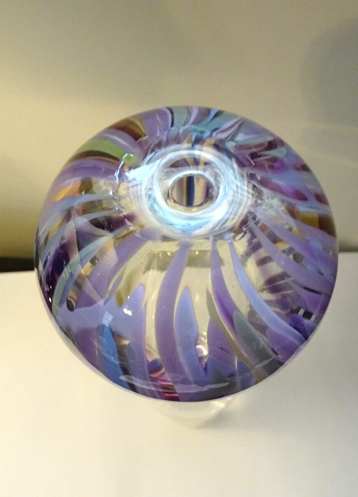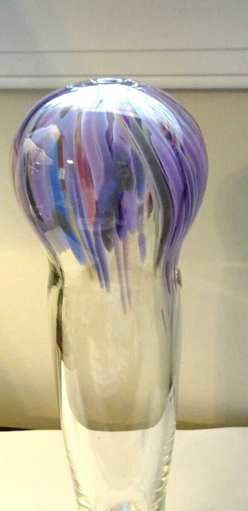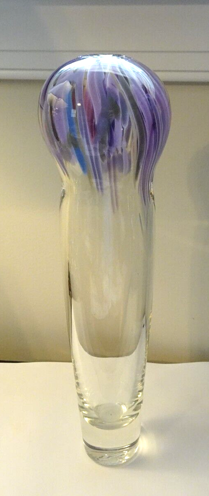 This is for a lovely Signed 1995 R. Krieger? Studio Art Glass Balloon Vase Sculpture. Signed by Artist ? (See Photo's) Measures: 12" Tall x 3.10" Wide (Top) Great Condition. No cracks or Chips. See Photo’s for Complete Description and Condition. Would make a great addition to any collection.