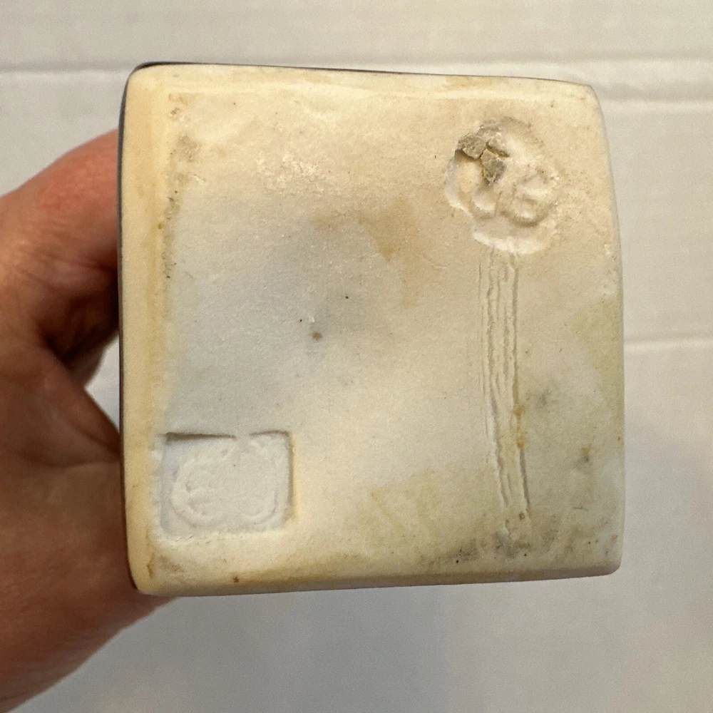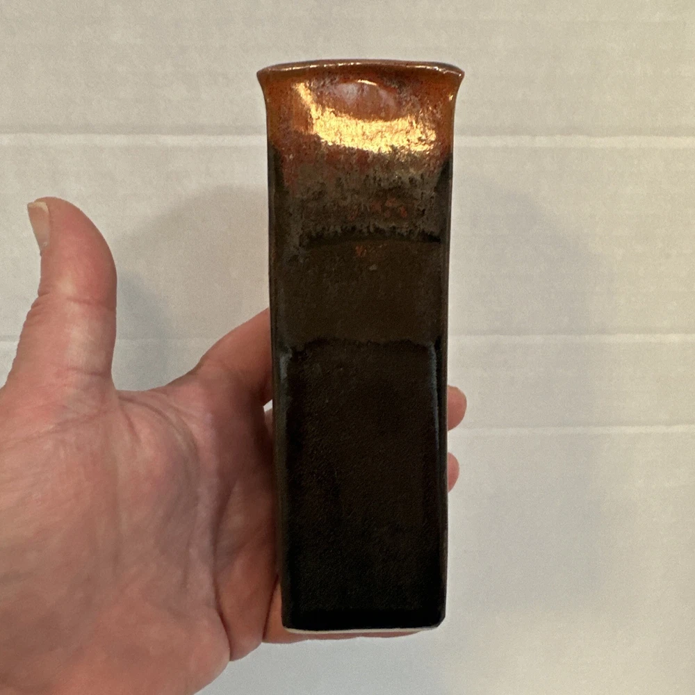 Vintage MCM Signed EG or EJ Square Pottery Vase 5.75” H 2” x 2”. Also has another mark or two on base. Not sure who made. Found at high end estate sale with other MCM pottery pieces. In good shape. No chips or nicks. If anyone knows maker i would appreciate a message. Reasonable offers will be considered. Shipped Priority mail.
