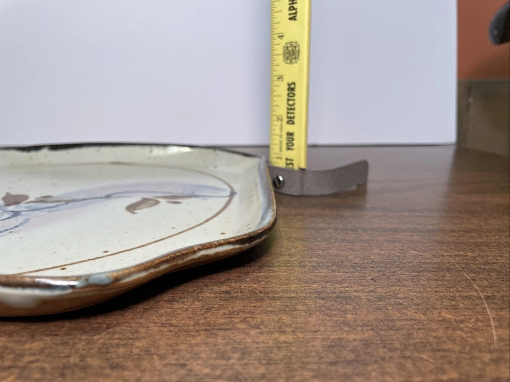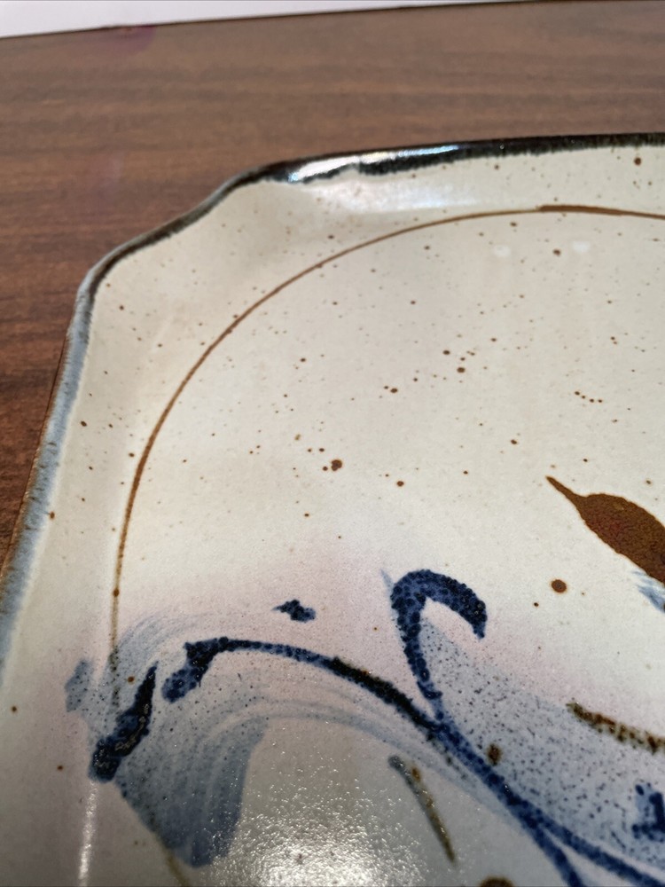 This stunning handmade platter is a gorgeous statement piece—rich stoneware with a unique, artistic touch. Perfect condition, just as described, and it arrived super fast! The craftsmanship is impressive, with beautiful glazing and subtle textures that catch the light. Ideal for serving or displaying, it adds warmth to any space. Highly recommend this seller for their quality pottery and quick shipping!