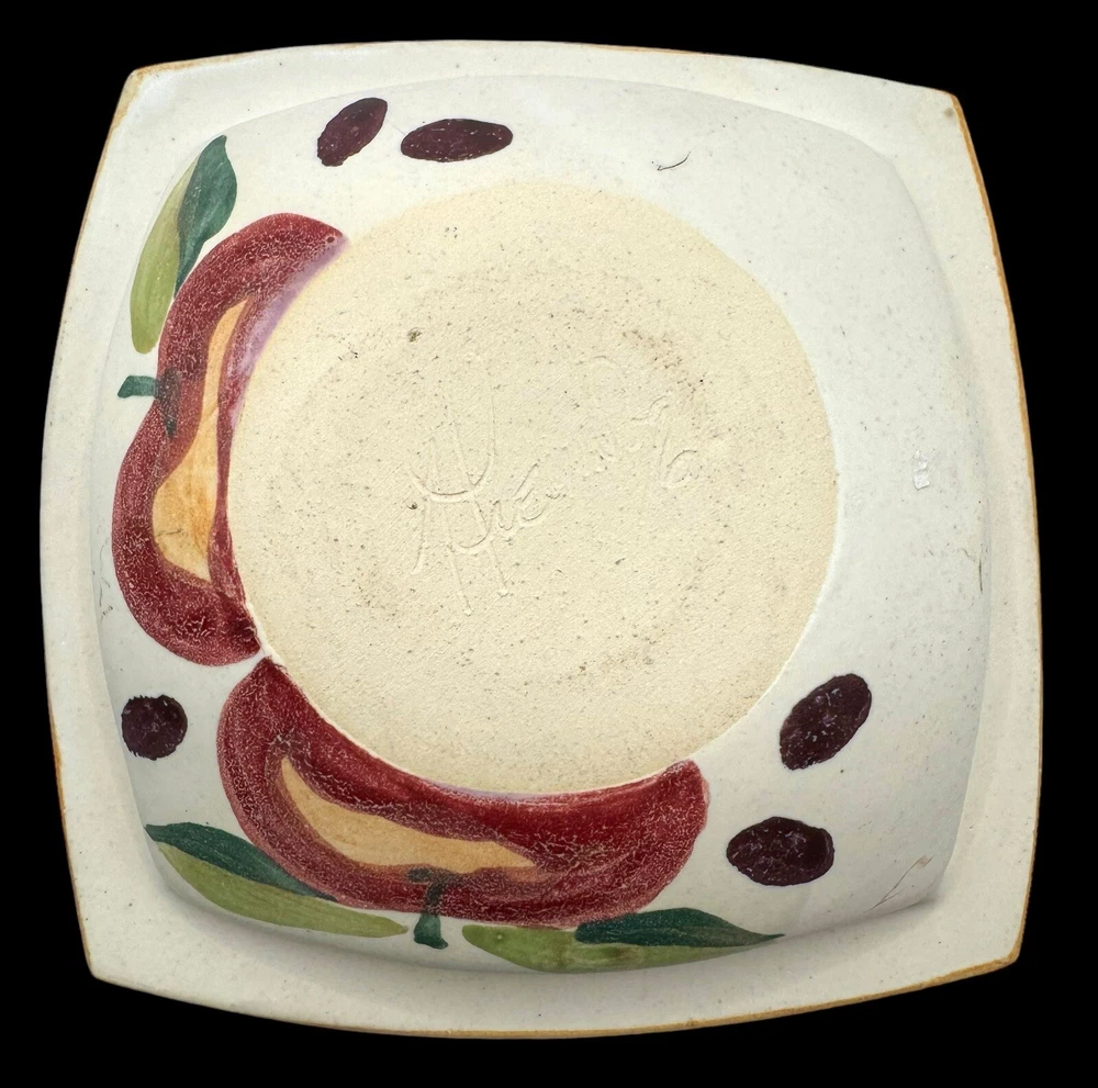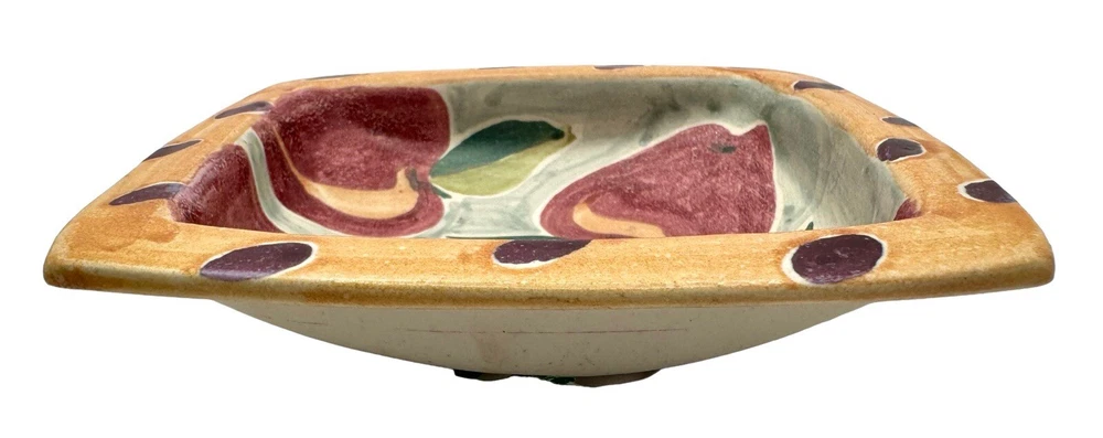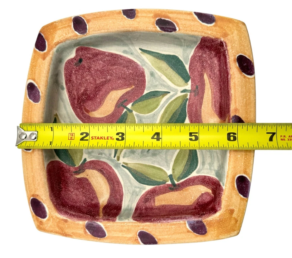 Signed Studio Art Pottery Dish Bowl Trinket Apple Fruit Hand Painted Square 6.5”. Condition is Used. Shipped with USPS Priority Mail.