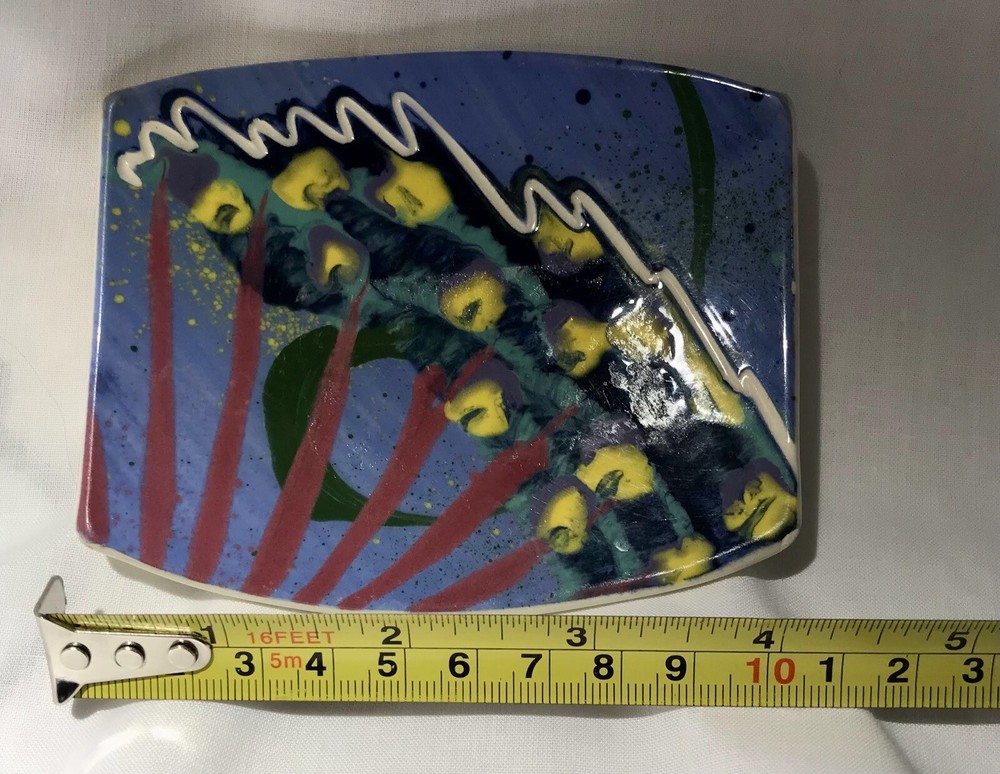 Signed Studio Art Pottery Multicolored Glazed Small Trinket Dish or Spoon Rest. In excellent condition. No chips, cracks, crazing or visible damage. Please see attached photos for measurements and exact item condition. Thank you for you interest in my small home business 🌻