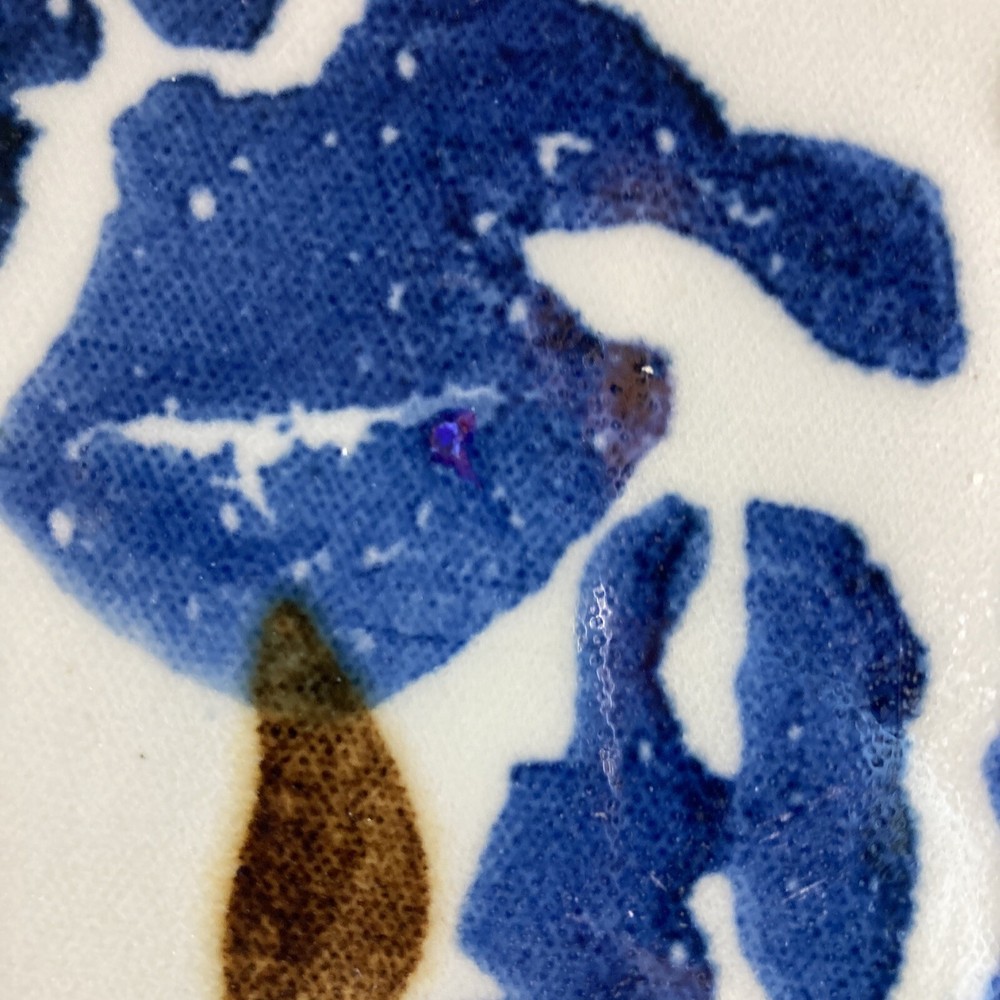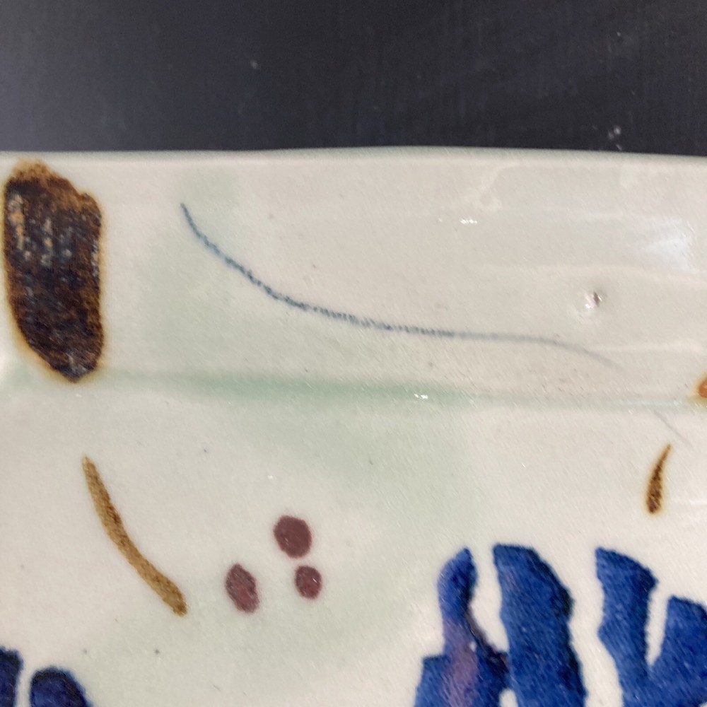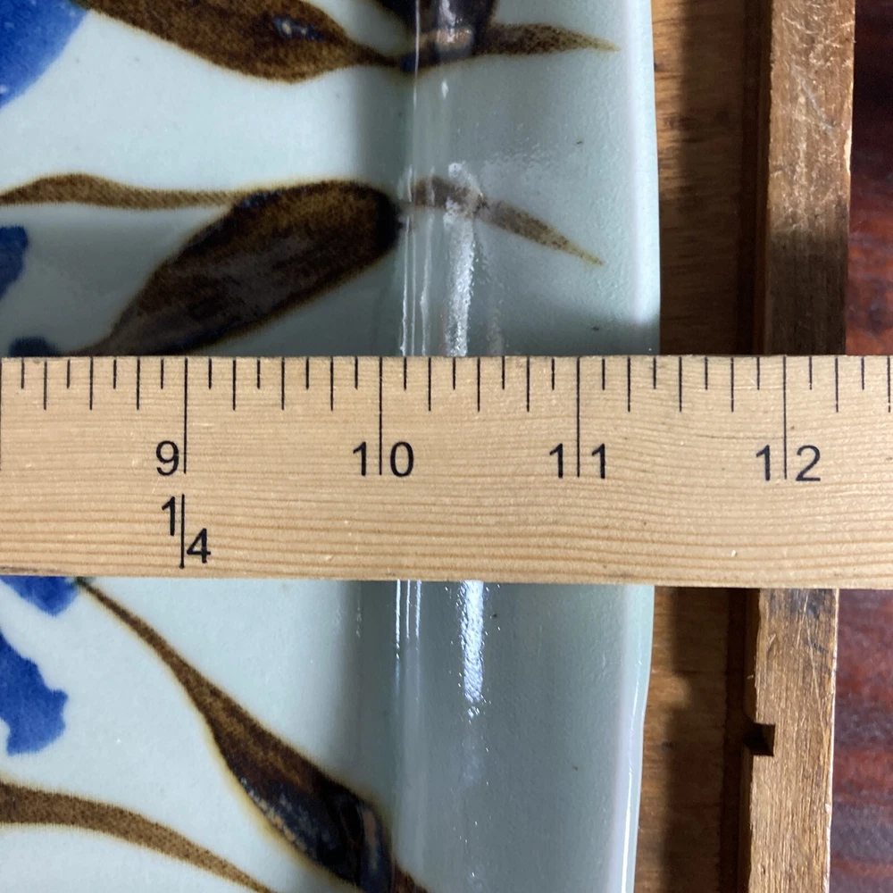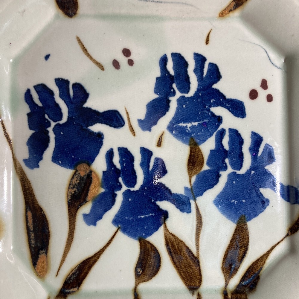 For sale one beautiful platter with blue iris and brown leaves, measuring 11 1/4" x 11 1/4". This piece is marked with an artist makers mark but I don't know who's it is. It looks like NMM. If you know the artist, please let me know, I would love to know! There are no chips, cracks, or crazing. The platter is in great shape and durable for everyday use. From a smoke and pet free home. All orders are packed superbly , shipped Priority Mail and within one day of payment. All descriptions are only my opinion. Please use the photos to finalize your decision and contact me with any questions. Thank you!