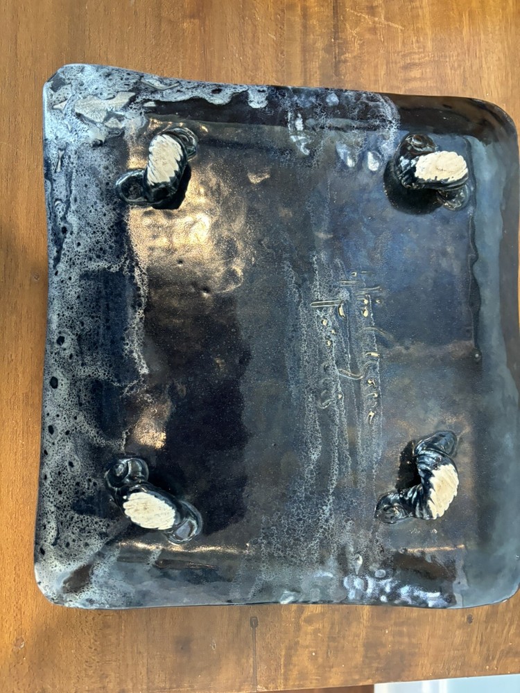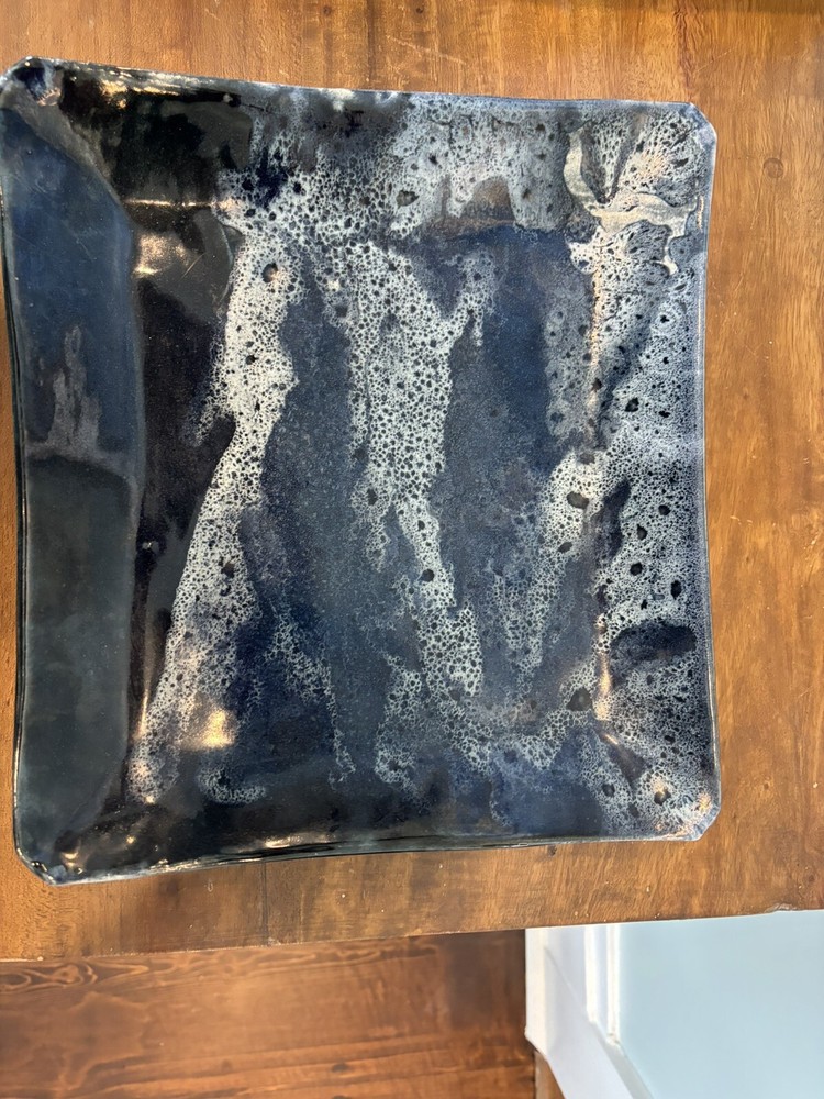Absolutely stunning handcrafted piece—the vibrant blue glaze and organic footed design make it a standout. Perfect condition, feels sturdy yet elegant. Ideal for serving or display, instantly elevates any table setting. Love the artist’s touch!