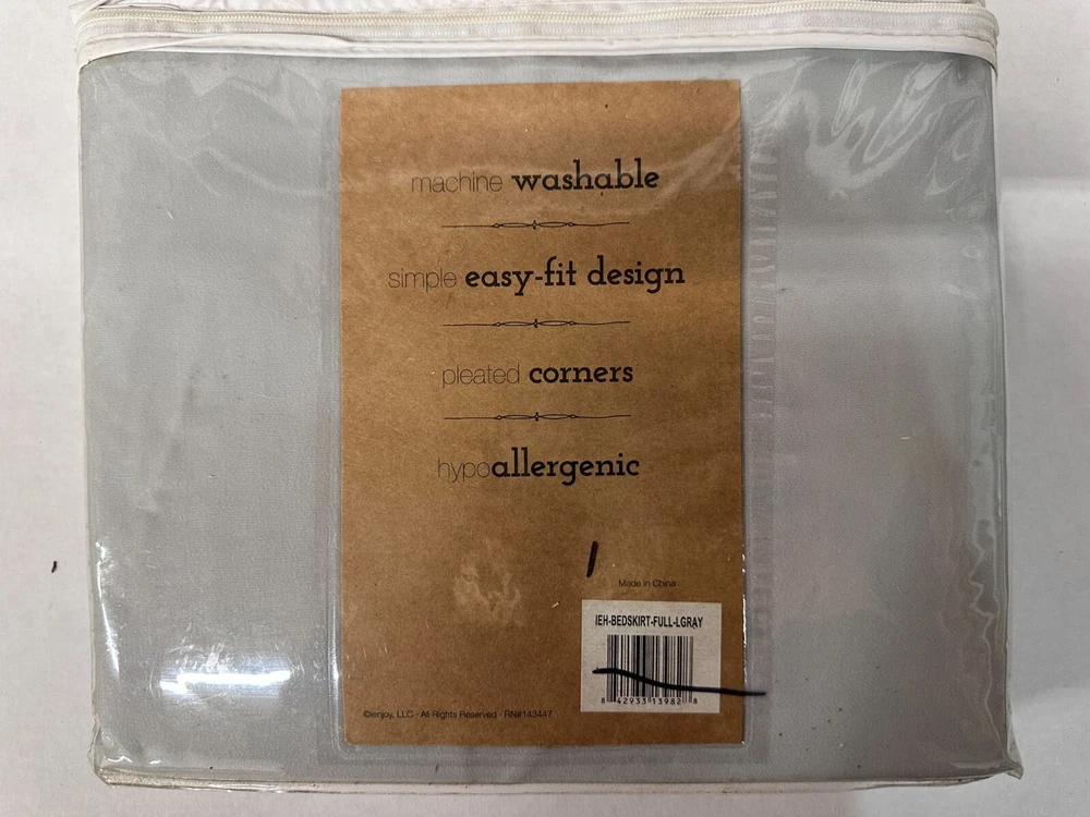 WE DO NOT SHIP TO P.O. BOXES. PLEASE PROVIDE A PHYSICAL MAILING ADDRESS. Item will be shipped free by USPS Priority Mail/UPS within 48 Lower States (NO SHIPPING for Alaska, Hawaii or Puerto Rico) Pull together the personalized look of your bedroom ensemble with the Simply Soft Bed Skirt Dust Ruffle by ienjoy Home . This 100% ultra-plush bed skirt is constructed from microfiber yarns that offer durability as well as a wrinkle-free look, with a 14-inch drop that helps conceal bedposts and under bed storage items. Enjoy this flat, pleated bed skirt and its fade-resistant material for many years. Dimensions: Full: 75L x 54W in. 100% double-brushed microfiber Hypoallergenic and antimicrobial Fade-resistant for long-lasting brilliance 14 in. drop for dust control and under bed concealment Machine washable