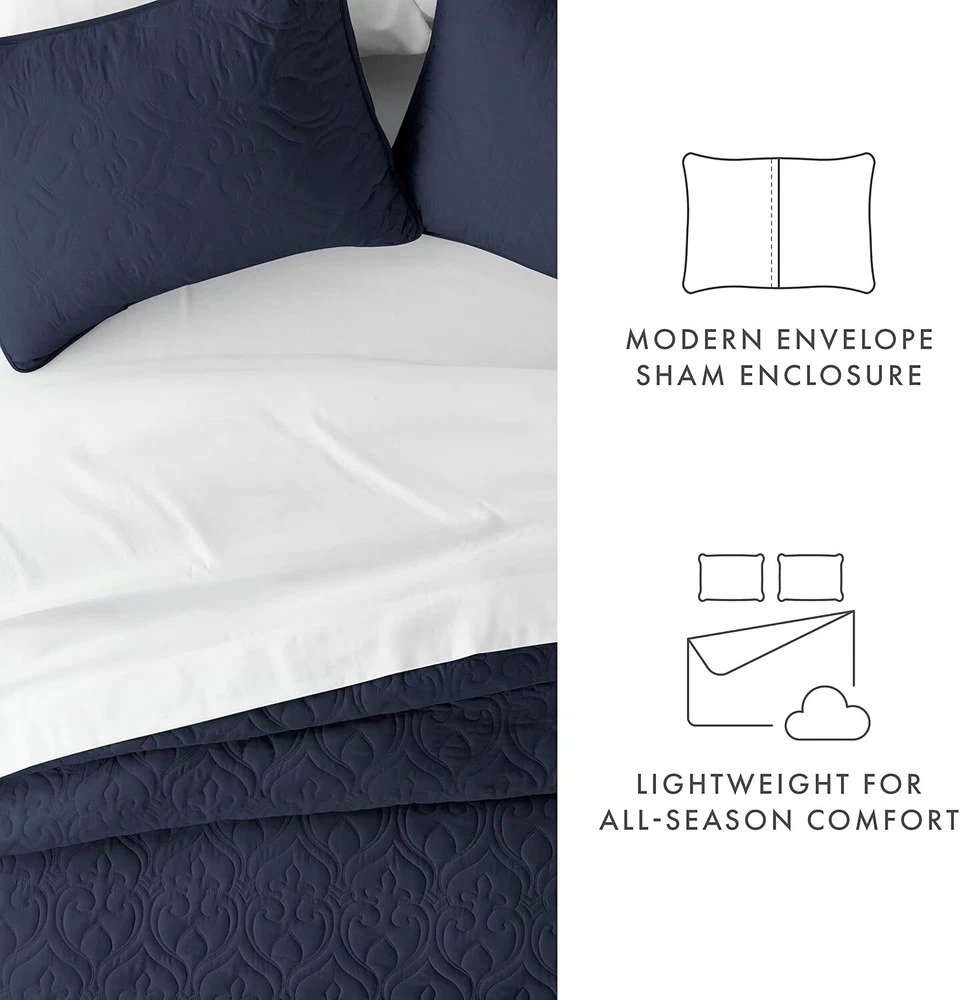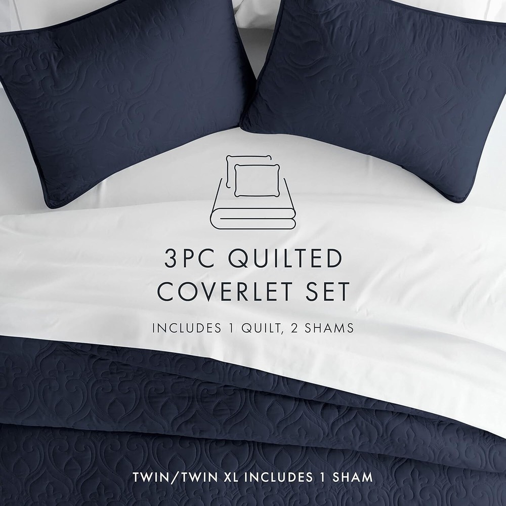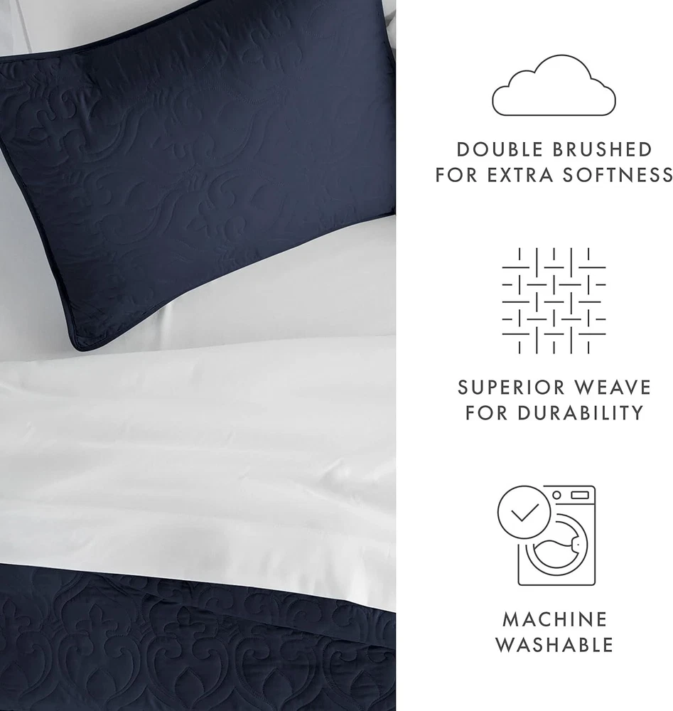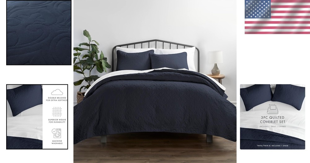 Simply Soft King Quilt Set - Includes Coverlet & 2 Pillow Shams, Navy Color ‹ › ‹ › ‹ › ‹ › ‹ › ‹ › ‹ › ‹ › Simply Soft King Quilt Set Includes: Coverlet & 2 Pillow Shams Color: Navy Material: Microfiber (Imported) Experience Luxury & Comfort Indulge in the ultimate sleeping experience with the Simply Soft 3 Piece Quilted Coverlet Set. Designed for comfort and elegance, this luxurious coverlet set promises to transform your nightly rituals into serene moments of relaxation. Perfect for enhancing the aesthetics of any room—be it your bedroom, guest room, children's room, dorm room, RV, or vacation home—this quilted set is a wonderful gifting option for any occasion, including Mother's Day, Father's Day, birthdays, or Christmas. Classic Tailored Look Set includes: 1 King-sized Quilted Coverlet (96"W x 106"L) and 2 Pillow Shams (20"W x 36"L). High Quality Craftsmanship Made from ultra-soft microfiber fabric, this quilted coverlet is crafted with exceptional attention to detail. It is: Fade, stain, shrink, and wrinkle resistant. Easy to care for—machine washable in cold water and quick-drying on tumble low. More durable than traditional cotton fabrics. Tremendous Selection This exquisite quilted coverlet set comes in a variety of captivating colors including Gray, Ivory, Pale Blue, White, Yellow, and Navy, along with patterns such as Damask, Herring, and Square. All-Season Comfort Our Simply Soft Premium Quilted Coverlet is designed for year-round comfort, providing warmth in the winter and coolness during the summer. Experience the ease of maintenance with wrinkle-free and stain-resistant features, making this coverlet not only beautiful but practical. It's the perfect addition to create a tranquil bedroom oasis. Why Choose Simply Soft? Elevate your home décor and engage your senses with the lavish comfort of the Simply Soft King Quilt Set. Treat yourself to extraordinary elegance and cozy relaxation—choose a coverlet set that embodies luxury while offering all the practical benefits you desire. Make every night's sleep an indulgent escape with Simply Soft. Shipping Free & Fast Shipping - We offer free shipping to most of the USA with a normal delivery time of 3-7 days. However, due to the current situation, additional delivery time (up to 3 weeks) may be required for some items. Alternative Carriers - We may use alternative carriers (e.g. USPS, FedEx, UPS, etc.) to ensure your package arrives safely and on time. Due to the use of multiple carriers, we are unable to provide a tracking number automatically. Handling Time - Orders are processed and shipped within 1-2 business days of receiving cleared payment. Shipping Restrictions - Shipping to Alaska, Hawaii, Puerto Rico, Guam, and other US territories may incur shipping charges or delivery restrictions. Please contact us before ordering, or your order can be refunded/cancelled. State Restrictions - There may be restrictions based on your state of purchase. For example, certain items may not be shipped to California due to state regulations. Contact for Tracking Updates - If you require tracking updates or have any concerns about the delivery of your order, please feel free to contact us, and we will be happy to assist you. Return 30-Day Hassle-Free Returns - We want you to be completely satisfied with your purchase. If you are not, you can return the item within 30 days of receiving it for a full refund or exchange. Easy Return Process - To start a return, simply contact us and we will provide you with a prepaid return shipping label and detailed instructions. Restocking Fee - There are no restocking fees for returns. However, the buyer is responsible for return shipping costs if the return is not due to a seller's error. Refund Processing Time - Refunds will be processed within 5 business days of receiving the returned item in its original condition. Payment We accept all major credit cards, PayPal, and Apple Pay for your convenience. Your payment information is secure and encrypted to ensure a safe and seamless transaction. Please complete your payment within 3 days of purchase to avoid any delays in shipping. Feedback Your feedback is extremely important to us. We strive to provide the best products and customer service possible. If you are satisfied with your purchase, please take a moment to leave us a positive review. If you have any concerns or issues with your order, please contact us before leaving negative feedback. We are committed to resolving any problems and ensuring your satisfaction. Contact Us If you have any questions or concerns, please feel free to reach out to our customer support team. You can contact us through the eBay messaging system. We are available Monday to Friday, 9:00 am to 5:00 pm EST, and we will do our best to respond to your inquiry within 24 hours. Buy it now and enjoy a pleasant shopping experience! UPC: Not Set Item Length: Not Set Item Width: Not Set Unit Quantity: 1 Material: Microfiber Character: Not Set Features: Machine Washable,Quilted,Durable,Soft Touch Theme: No Theme Care Instructions: Machine Wash Department: Adults Room: Bedroom Labels & Certifications: Not Set Brand: Unbranded Size: King Type: Coverlet Set Color: Navy Pattern: Patchwork Style: Contemporary Fill Material: None Country/Region of Manufacture: Not Set MPN: Not Set Character Family: Not Set Insulation: All Seasons Shape: Rectangular Closure Type: No Closure GSM (Grams per Square Meter): Over 800 Thread Count: 20000 Drop Length: Not Set Model: Not Set Product Line: Not Set Unit Type: Unit Personalize: Not Set