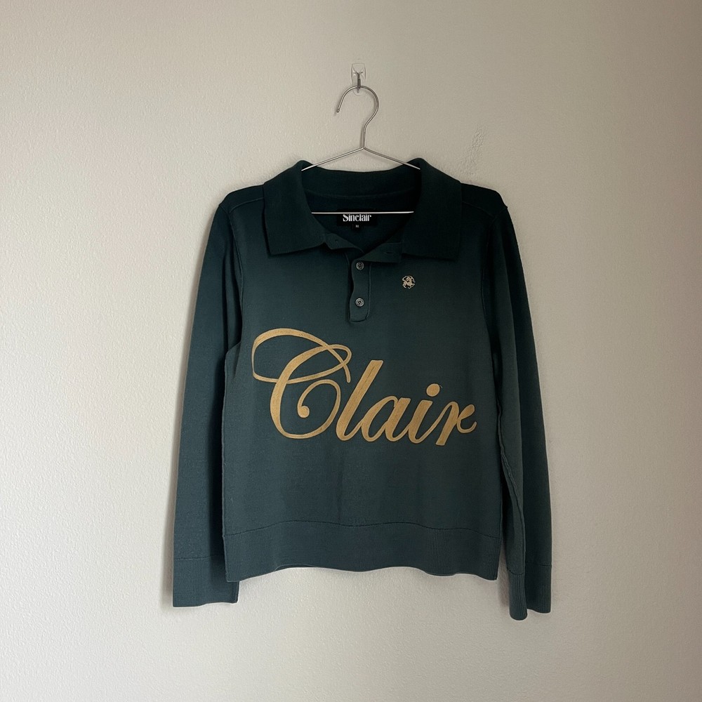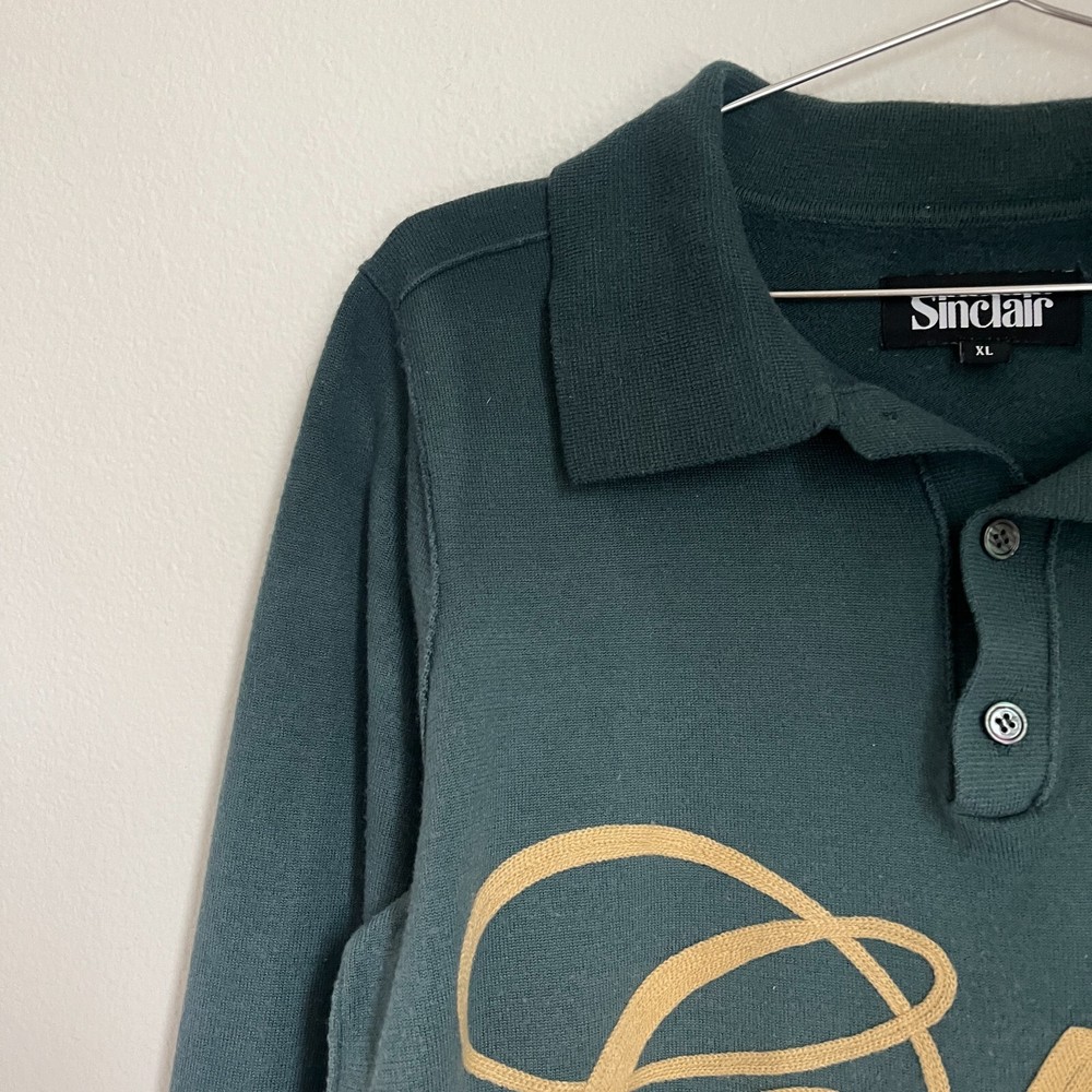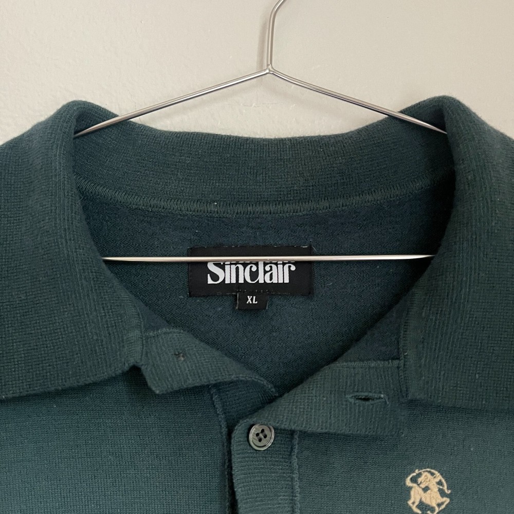 Sinclair Men's Wool Blend Dip Dye Sweater Polo in Teal Combo Size: XLARGE Condition: GREAT! Used gently with minimal signs of wear from general use No stains or holes Comes from smoke free home Measurements (in inches): Pit-pit: 21.5" Length: 24" Sleeve Length: 18" (Underarm - End of Sleeve) K09
