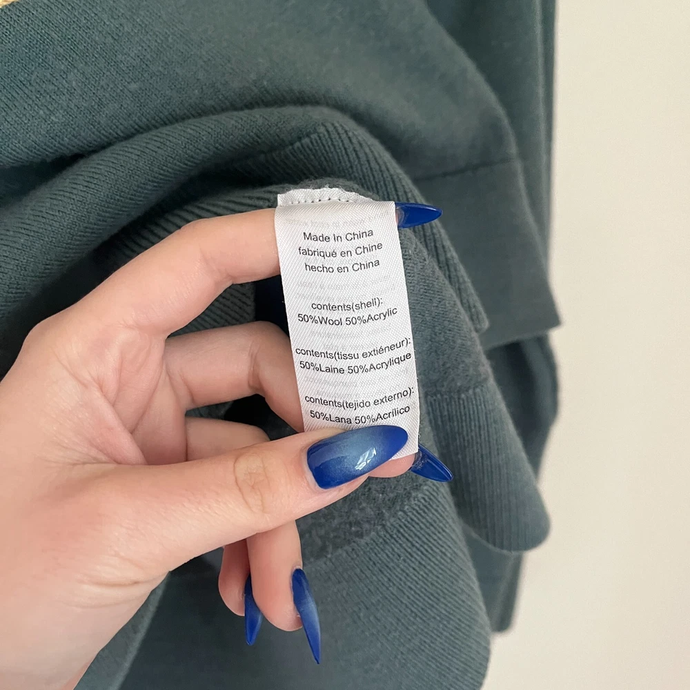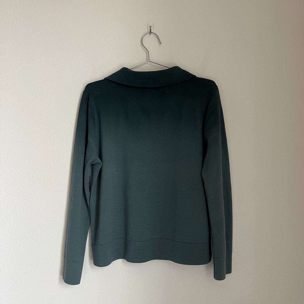 This sweater polo is fantastic! The teal color combo is even better in person and the wool blend feels so cozy. Got tons of compliments on the unique dip dye look. Fits perfectly and arrived in excellent condition - you'd never know it was pre-loved. An absolute steal for such a stylish, quality piece!