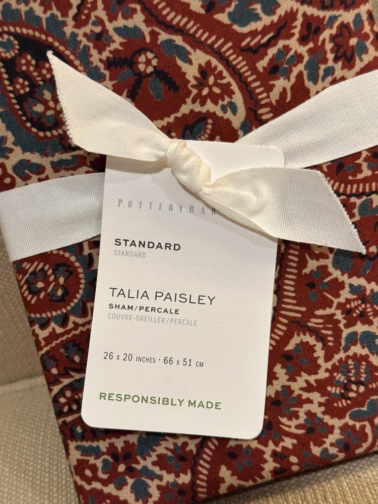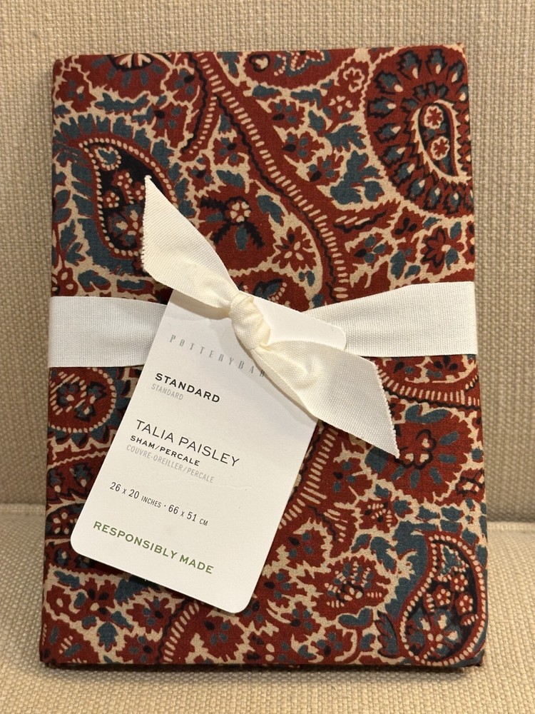 Single (1) Pottery Barn Talia Paisley Percale Pillow STANDARD Sham 20x26" NEW...