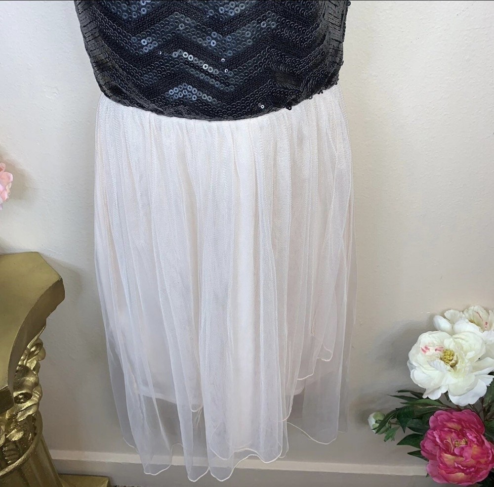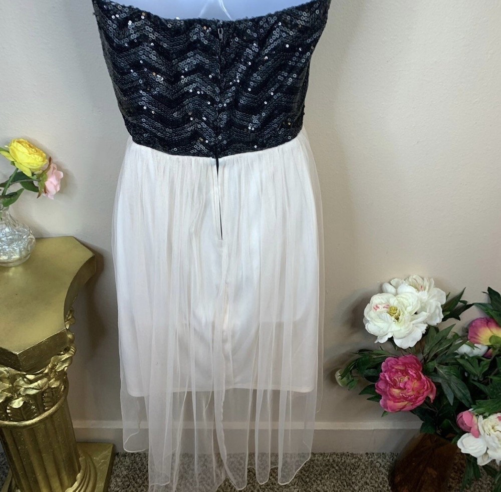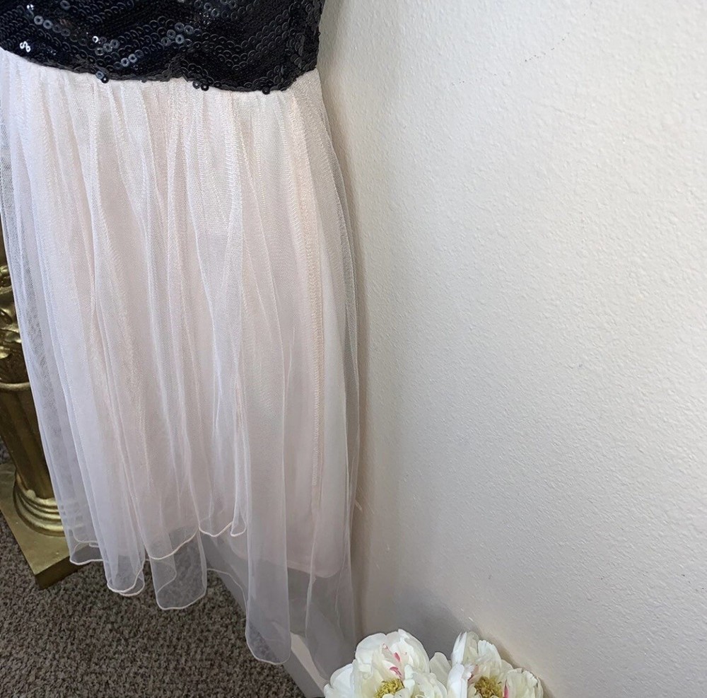 Size 7 Studio Y Black Sequin Pink Lace Strapless Cocktail Dress Event Party. Gorgeous black sequin and pink mesh lace dress Stretch throughout Size 7 Studio Y brand Bust:31 Waist:27 Hips:40 Length:33-40 All items will be shipped clean, free of odors, and ready to wear. Comes from a smoke free home. Items are preowned unless otherwise stated. Please make sure your address on file is correct before ordering. Please look at all photos. Every brand fits differently with their sizing, so please read the measurements. All sales are final. C2