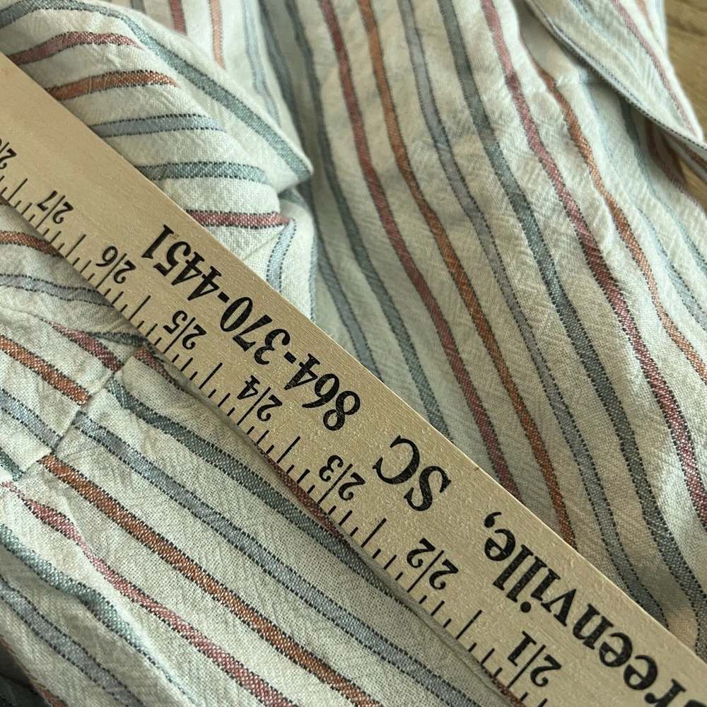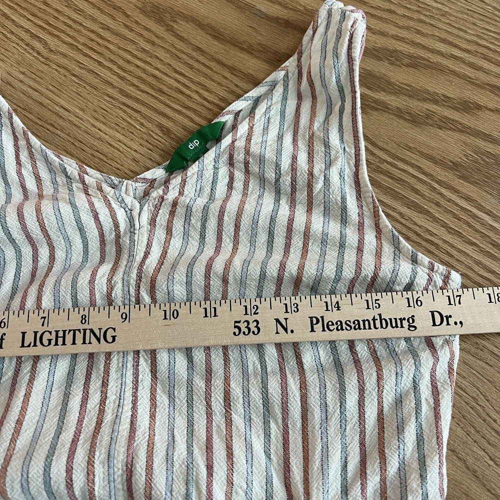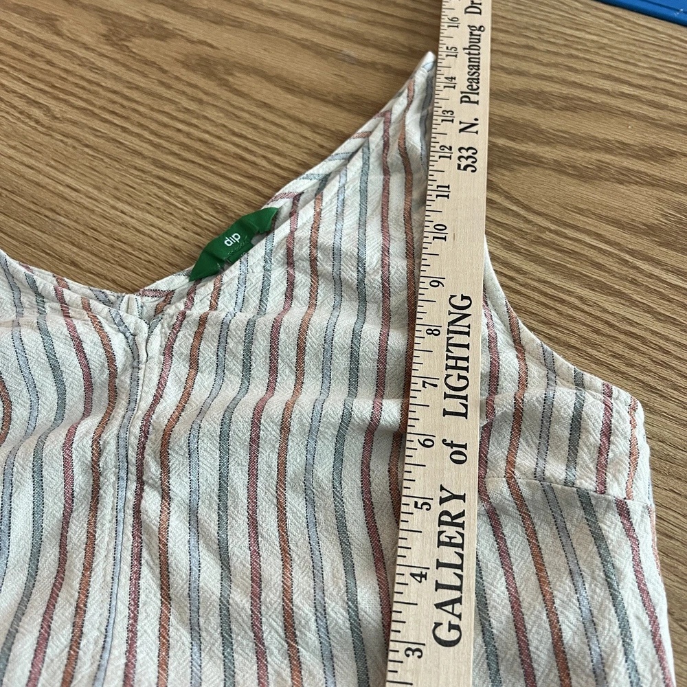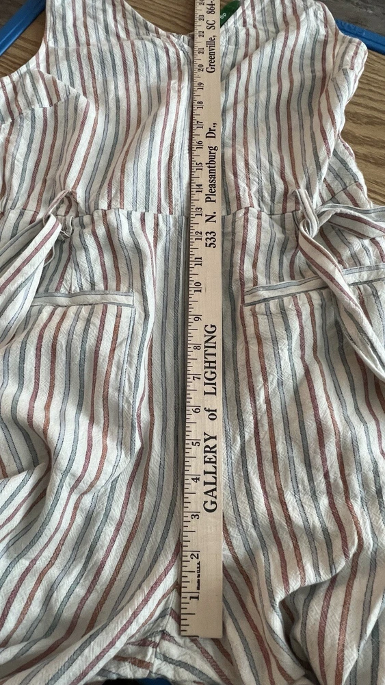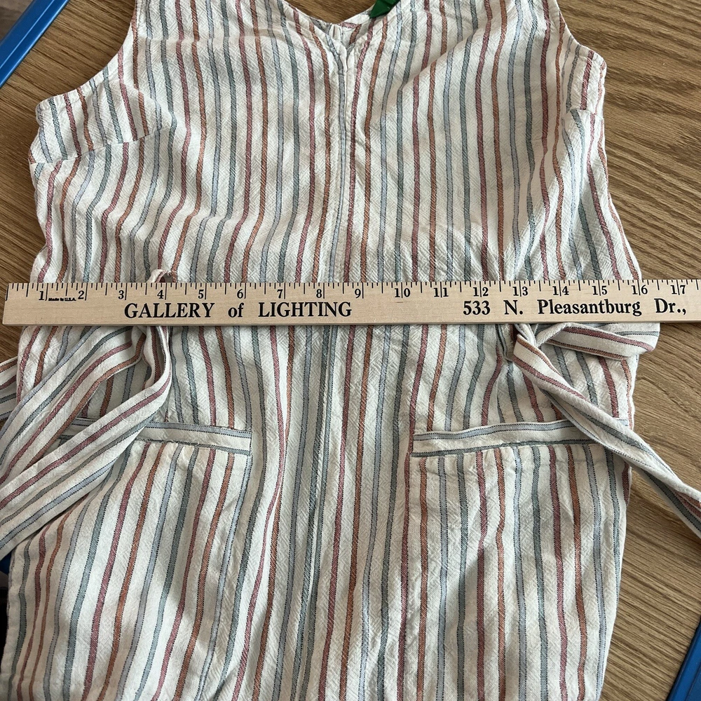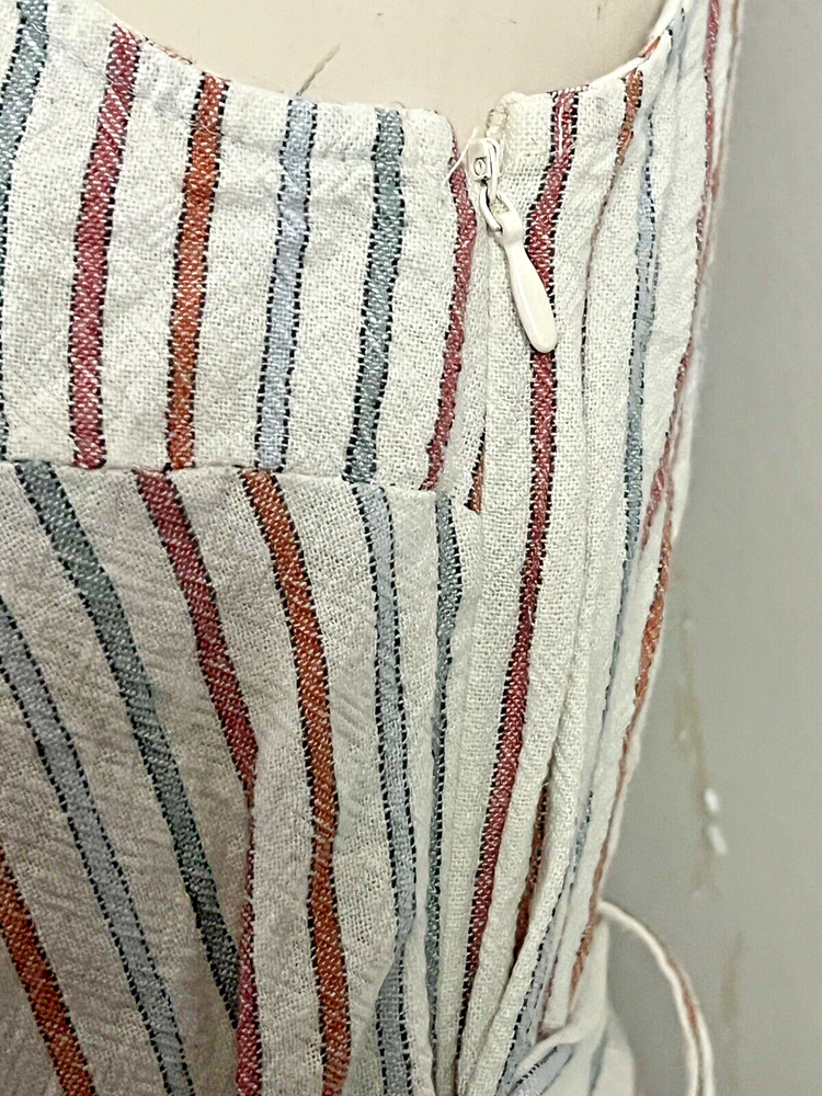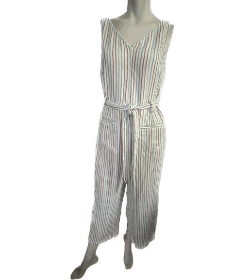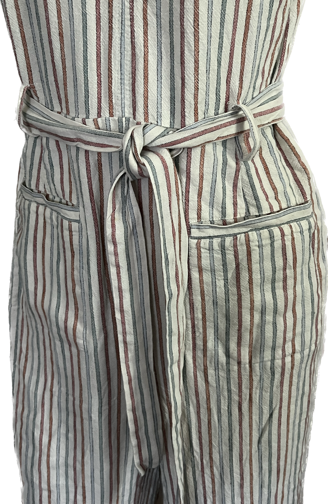 SKINNY DIP Womens Large Striped Linen Jumper Jumpsuit Romper with Belt Pre-used in excellent condition, no stains or rips! WILL COMBINE SHIPPING WITH OTHER ITEMS IN MY STORE TO AVOID RETURNS, PLEASE PAY ATTENTION TO MEASUREMENTS SEE PICTURES FOR MEASUREMENTS ***WE SHIP OUT DAILY -- YOU WILL EXPERIENCE FAST SHIPPING*** **Colors may vary in pictures due to the use of different cameras & lighting. Close ups show the closest to actual coloring. **SHIPPING PRICES are calculated by weight, size of package/box and buyer?s location. Unfortunately, we cannot control the price of shipping.