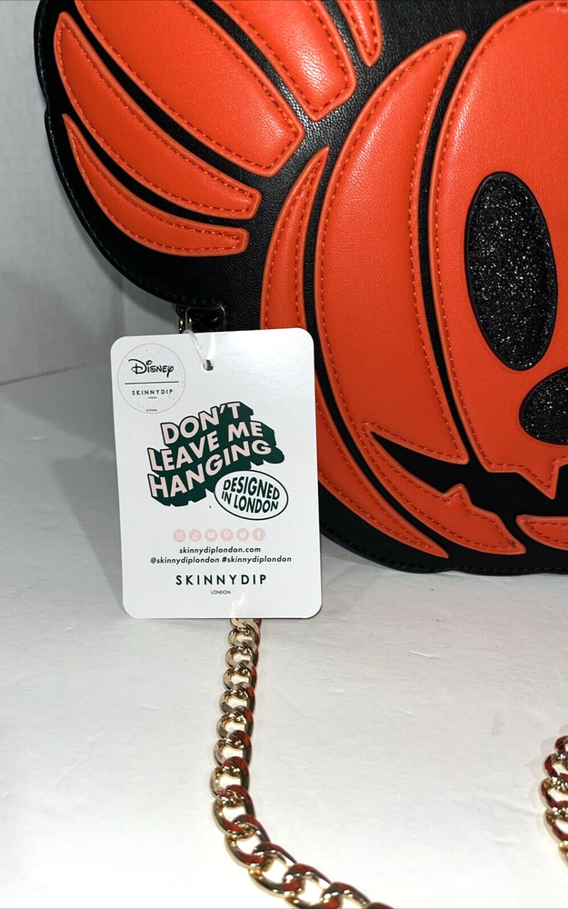 This is a new Skinny Dip London Disney Mickey Mouse JOL, Pumpkin, Halloween, Crossbody Purse. It has a gold colored zipper closure on the exterior as well as the interior pocket. The purse is 8 inches round and has the typical Mickey Mouse ears. The chain is gold colored with a 22 inch drop. The exterior of the purse is made of polyurethane and the interior is made of 100% polyester and is in new condition. This will be cute to wear for the Halloween holiday or that special trip to Disney! Please see all photos for product identification a condition. Thank you for looking and please make sure to read our auction practices at the end of the listing, this is for both of our benefits so there is no confusion later. Thanks again and if you have any questions please feel free to email me. I am happy to answer all inquiries. Please visit our eBay store and check out our other listings for more great deals. We will gladly combine shipping for extra value. I am using calculated shipping by your zip code, I have found this to be the best deal with the price of shipping being so high. This would go for media mail as well. This way whatever the post office charges is what you pay. Being an eBay customer myself it is an option I like to use when I am purchasing items as well. Sometimes I will use UPS Ground if I find them to be cheaper especially on heavier or larger items. I will post that in the listing if that is the case. If you would like priority mail just let me know and I will adjust the charges and send you an updated invoice. Also, if you feel you need insurance please do so this way if the post office should make an error you are covered. I provide the tracking for all purchases but after and item leaves me I cannot be responsible for the item if it get broken or lost by the post office I can only track it for you unless you have taken out insurance. We do not offer refunds but try our best to describe our products so there are no surprises to our customers. Please read description carefully and ask questions. We appreciate your business and are glad to answer all inquiries. Thanks. Payments are due by the end of the third day of the close of the auction. We are a smoke free but not pet free home we have a dog and cat. I keep my animals away from my office and eBay things as best as I can but if you have any animals you will know as HARD as you try animal hair has a mind of its own. I have an asthmatic child and am constantly vacuuming.... I am also very fussy and check over everything before mailing but please excuse a stray hair every now and then in the rare case that should happen. Please be sure your shipping address is correct. We only ship within the United States or through the eBay Global Shipping Service. We do not ship internationally otherwise. Item will ship after payment has cleared.