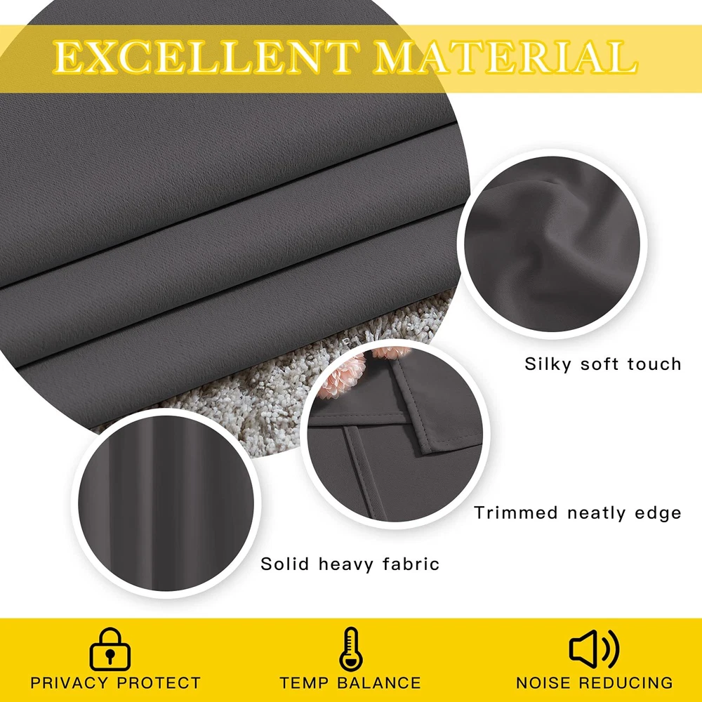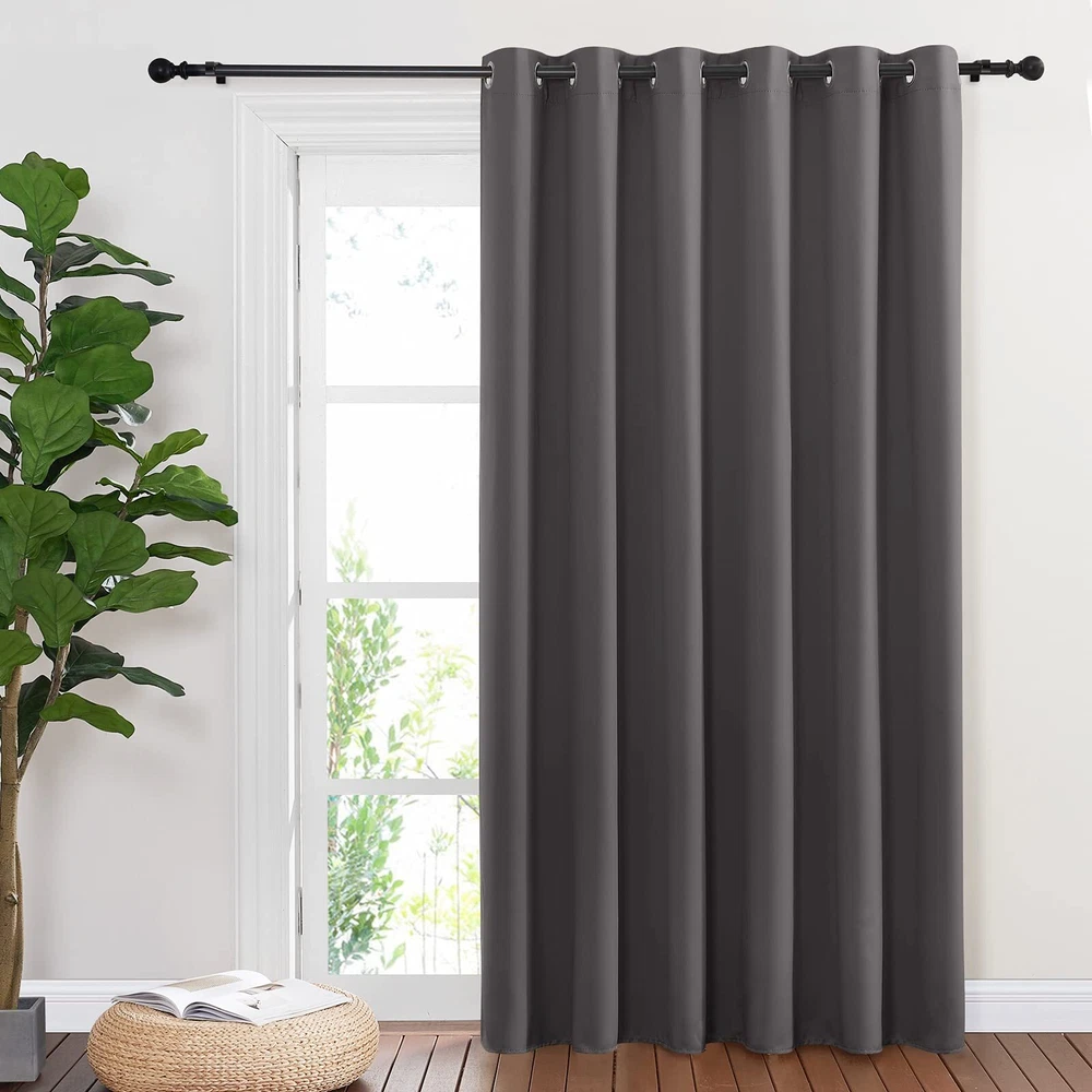 READY MADE: The package includes a panel Sliding Glass Door Curtains with 80" wide x 84" length. The same material back as of front makes Patio Door Curtains appear more elegant. As a general rule, for proper fullness panels should measure 1.5-2 times the width of your window/opening. NICE FABRIC: The blackout curtain's fabric is super soft and heavy innovative triple-weave polyester fabric. Suitable perfectly for sliding doors, patio doors, and any large window. These wide curtains can be hung separately, or combine with sheer curtains. MULTIPLE FUNCTIONAL: These blackout curtains are wide enough to cover the sliding door perfectly. Besides, the curtain panel helps your patio door to block out most of the lights, high performance on thermal insulated, noise-reducing, and privacy-protecting. WISE BUDGET: protects your furniture and floor exposed to the sun, while still helping you save money on heating and cooling your home. Privacy protection. The greatest benefit is to bring you a good night's sleep, making you full of energy every day. EASY MAINTENANCE: Good-quality finishing will withstand years of use. Machine washable and Wash the water temperature below 86F. Mild detergent no bleaching. Low-temperature ironing. Measure your pole and window size before you choosing curtains.