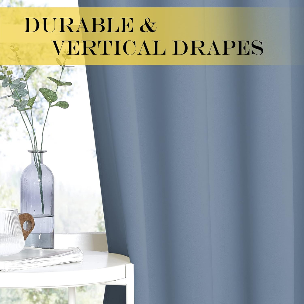 These curtains are amazing! They block out light completely, keeping my room dark and cozy. The thermal insulation works great, helping maintain a comfortable temperature. The stone blue color looks elegant, and the fabric feels high-quality. Easy to install and fits my sliding door perfectly. No more glare on the TV, and my energy bill has dropped. Definitely worth it!