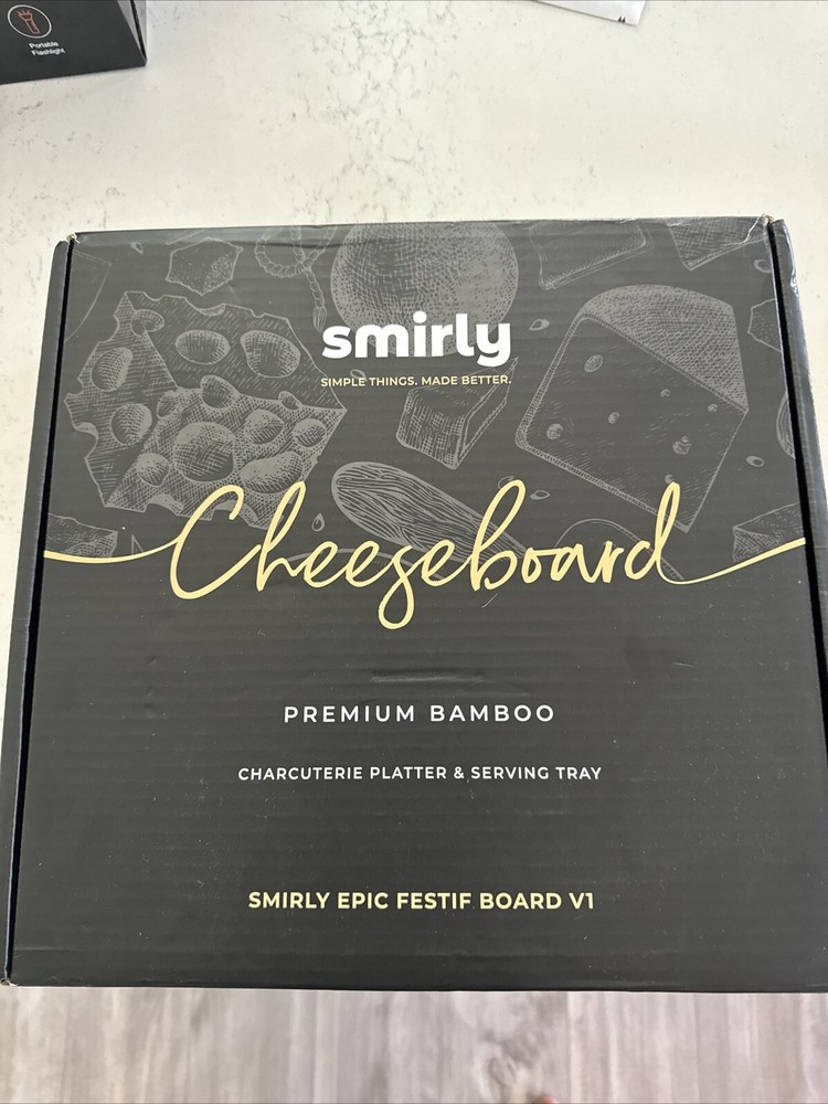 Smirly Epic Festif Cheese Board V1 Charcuterie Bread Dips Utensils Bamboo Wood. Shipped with USPS Ground Advantage....