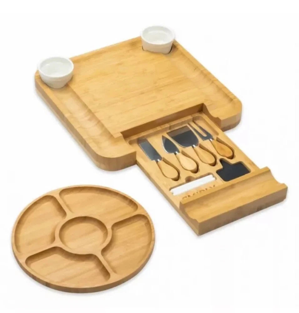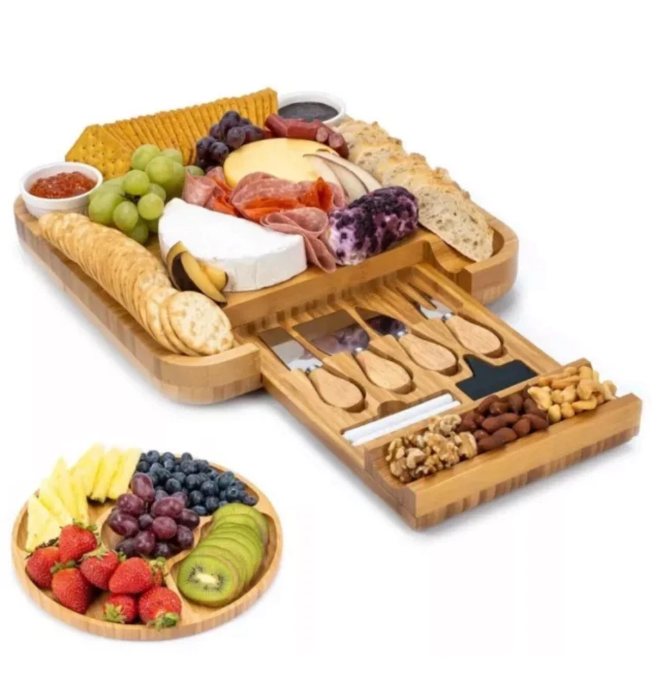 Smirly Epic Festif Cheese Board V1 Charcuterie Bread Dips Utensils Bamboo Wood. Shipped with USPS Ground Advantage.