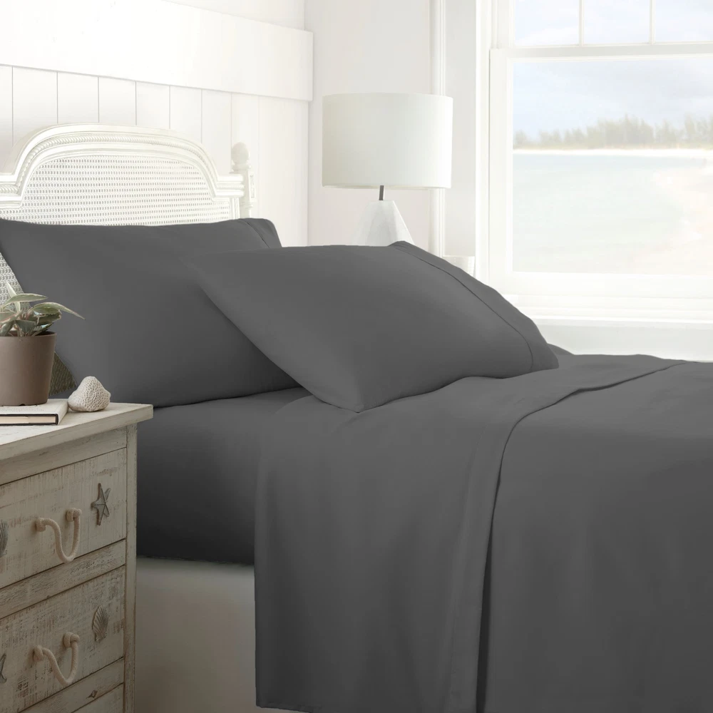 View more great items Hotel Quality Ultra Soft 4 Piece Bed Sheet Set - Hypoallergenic Wrinkle Free The Home Collection 4-Piece sheet set is designed with your comfort in mind. Made of the finest imported double-brushed microfiber yarns creating a new standard in softness and breathability, this 4-piece sheet set will make it incredibly hard to get out of bed in the morning. Our premium yarns are two times more durable than cotton, completely wrinkle free, and perfect for all seasons. FEATURES: · 4-piece set includes 1 Flat Sheet, 1 Fitted Sheet, and 2 Pillowcases (Twin and Twin Extra Long sets come with 1 Pillowcase) · Double-brushed microfiber for outstanding comfort · 16" deep pocket fitted sheets - perfect for oversized mattresses · Easy Care: Machine wash cold, Tumble dry low, Fade Resistant, Wrinkle Free, No Ironing Necessary · Superior weave for durability and a buttery-soft touch · Made of ultra-soft and breathable 90 GSM microfiber · Hypoallergenic and Antimicrobial for allergy sufferers and sensitive skin · Sizes: Twin, Twin Extra Long, Full, Queen, King, and California King · Available in a variety of 12 beautiful colors: White, Cream, Taupe, Gold, Gray, Navy, Sage, Chocolate, Purple, Aqua, Burgundy, and Black SIZE GUIDE: Twin Size Set Includes: 1 Twin Fitted Sheet: 39" W x 75" L +16" 1 Twin Flat Sheet: 66" W x 96" L 1 Standard Pillowcase: 20" W x 30" L Twin Extra Long Size Set Includes: 1 Twin Extra Long Fitted Sheet: 39" W x 81” L +16" 1 Twin Extra Long Flat Sheet: 66" W x 96" L 1 Standard Pillowcase: 20" W x 30" L Full Size Set Includes: · 1 Full Fitted Sheet: 54" W x 75" L + 16" · 1 Full Flat Sheet: 81" W x 96" L · 2 Standard Pillowcases: 20" W x 30" L Queen Size Set Includes: · 1 Queen Fitted Sheet: 60" W x 80" L + 16" · 1 Queen Flat Sheet: 90" W x 102" L · 2 Standard Pillowcases: 20" W x 30" L King Size Set Includes: · 1 King Fitted Sheet: 78" W x 80" L + 16" · 1 King Flat Sheet: 102" W x 105" L · 2 King Pillowcases: 20" W x 40" L California King Size Set Includes: · 1 California King Fitted Sheet: 72" W x 84" L + 16" · 1 California King Flat Sheet: 108" W x 102" L · 2 King Pillowcases: 20" W x 40" L Frequently Asked Questions Return Policy Q: What Is Your Return Policy? A: ienjoy Home offers a 30-day money-back guarantee on all items. Free return shipping. If you need to return an item for a refund, please contact us within the return period. Q: What Are The Warranty Details? A: All ienjoy Home sales include our 30-day money-back guarantee. Items may have additional warranty coverage. To determine if your purchase is covered by our manufacturer warranty, please contact us for further assistance. Payment Q: Are Your Prices Negotiable? A: Our prices are already heavily discounted and are therefore not subject to negotiation. Shipping Q: How Much Does Shipping Cost? A: Standard shipping is FREE on all items shipped within the United States. For express and international shipping, please contact us for further assistance. (Unfortunately we do not ship to Alaska or Hawaii) Q: When Will My Order Ship? A: All orders ship within 1 business day. Please keep in mind, if placed over the weekend your order will ship out the following business day. When your order ships, you will be emailed tracking information. Q: Do You Ship Internationally? A: Yes, international shipping is handled by eBay's Global Shipping program. For more information please contact eBay directly.