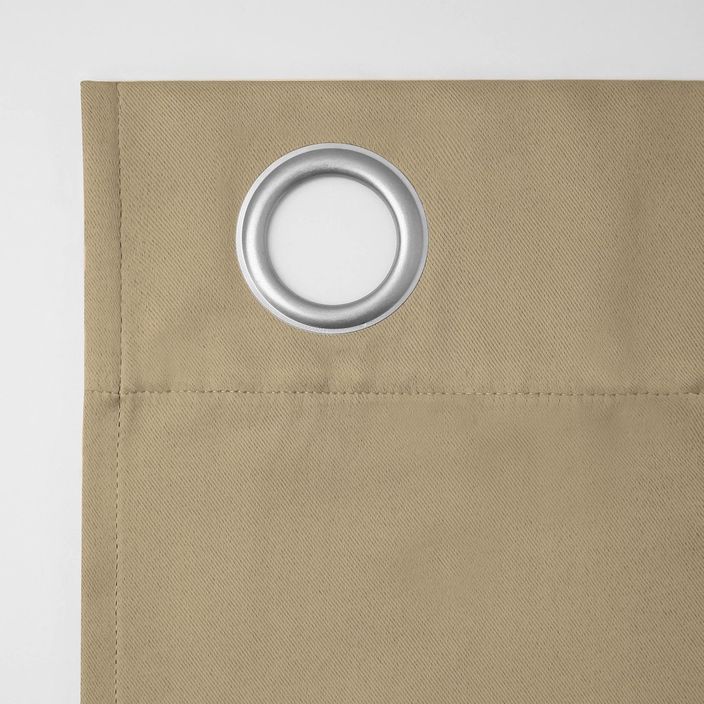 Soho Energy Efficient Blackout Grommet Curtain Panel Pairs infuse a modern sophistication into any living space. Equipped with built-in metal grommets for easy hanging on standard curtain rods up to 1.5" in diameter. Blackout technology blocks out most outside light, offers outside noise reduction by up to 30%, and decreases energy lost through your windows by up to 40%. Comfort is optimized with thermal properties that help keep summer heat and winter chill out of your home. Hang in your living room for enhanced privacy, or in your bedroom for a sounder, more uninterrupted sleep. Pair includes 2 taupe panels, each measuring 54" width by 63" length. Measure carefully before selecting your desired size and quantity. Rod not included. Machine wash cold on gentle cycle. Use non-chlorine bleach when needed. Tumble dry on low heat, using a cool iron as needed. Blackout technology blocks out most unwanted light while enhancing privacy Energy efficient design reduces energy lost through your windows by up to 40% Thermal properties help keep summer heat and winter chill out of your home Noise reduction up to 30% helps you get a sounder, more uninterrupted sleep Built-in metal grommets fit curtain rods up to 1.5" in diameter Pair includes 2 panels