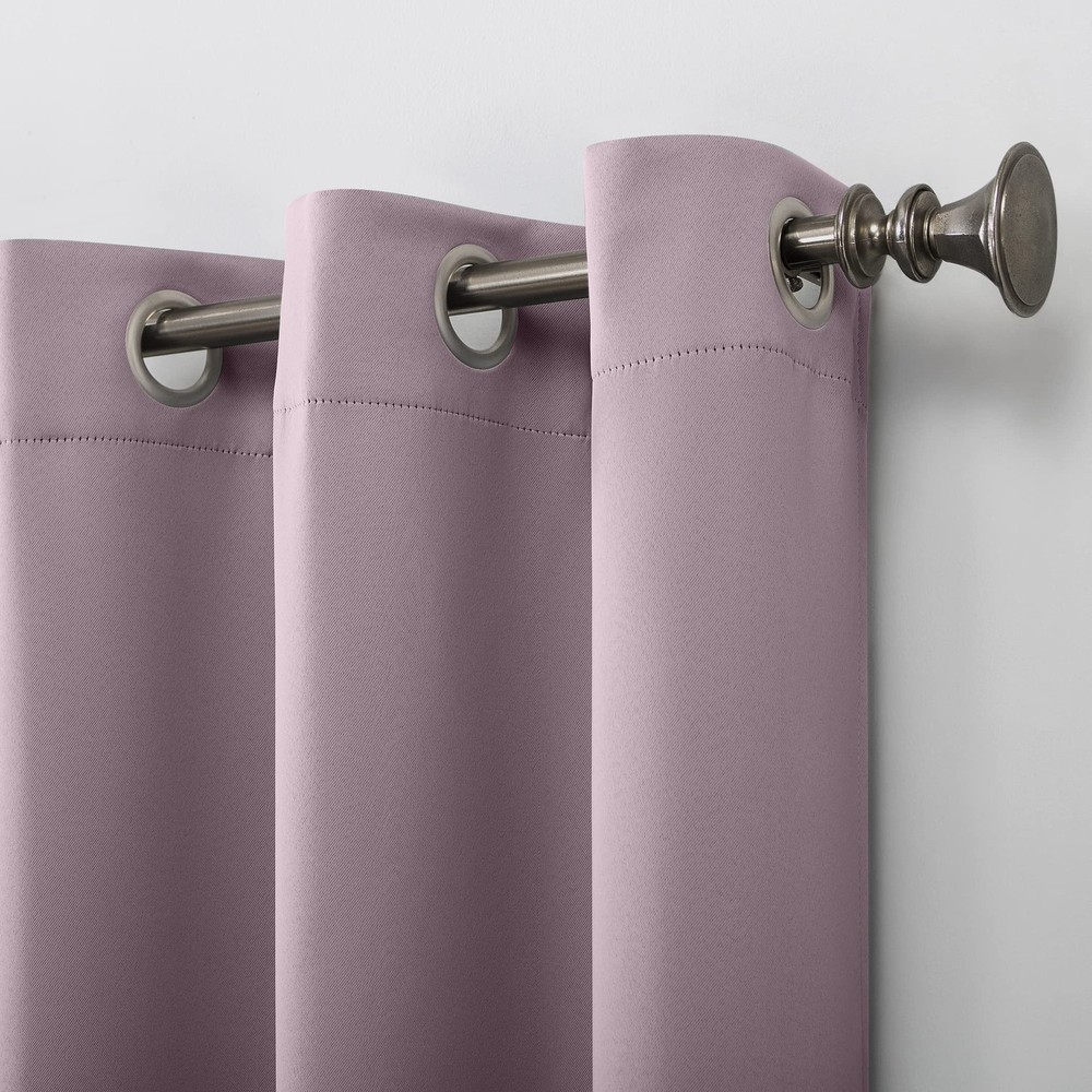 Blackout technology blocks out most unwanted light while enhancing privacy Energy efficient design reduces energy lost through your windows by up to 40% Thermal properties help keep summer heat and winter chill out of your home Noise reduction up to 30% helps you get a sounder, more uninterrupted sleep Built-in metal grommets fit curtain rods up to 1.5" in diameter Pair includes 2 panels