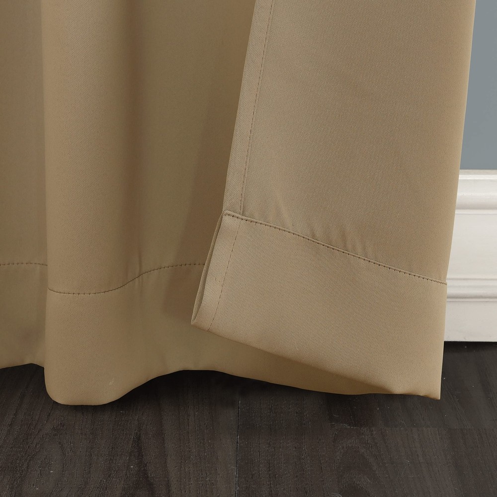 Soho Energy Efficient Blackout Grommet Curtain Panel Pairs infuse a modern sophistication into any living space. Equipped with built-in metal grommets for easy hanging on standard curtain rods up to 1.5" in diameter. Blackout technology blocks out most outside light, offers outside noise reduction by up to 30%, and decreases energy lost through your windows by up to 40%. Comfort is optimized with thermal properties that help keep summer heat and winter chill out of your home. Hang in your living room for enhanced privacy, or in your bedroom for a sounder, more uninterrupted sleep. Pair includes 2 taupe panels, each measuring 54" width by 96" length. Measure carefully before selecting your desired size and quantity. Rod not included. Machine wash cold on gentle cycle. Use non-chlorine bleach when needed. Tumble dry on low heat, using a cool iron as needed. Blackout technology blocks out most unwanted light while enhancing privacy Energy efficient design reduces energy lost through your windows by up to 40% Thermal properties help keep summer heat and winter chill out of your home Noise reduction up to 30% helps you get a sounder, more uninterrupted sleep Built-in metal grommets fit curtain rods up to 1.5" in diameter Pair includes 2 panels