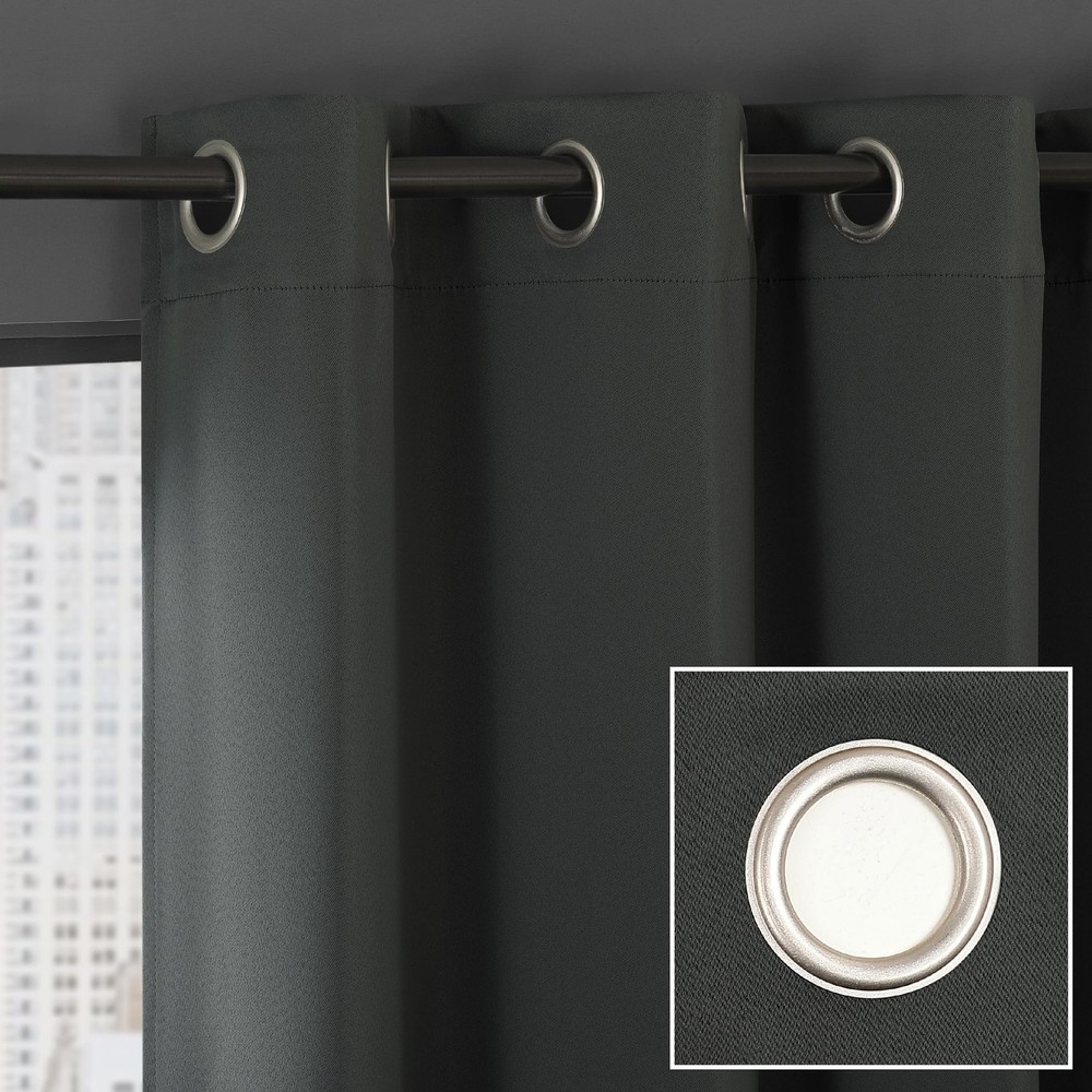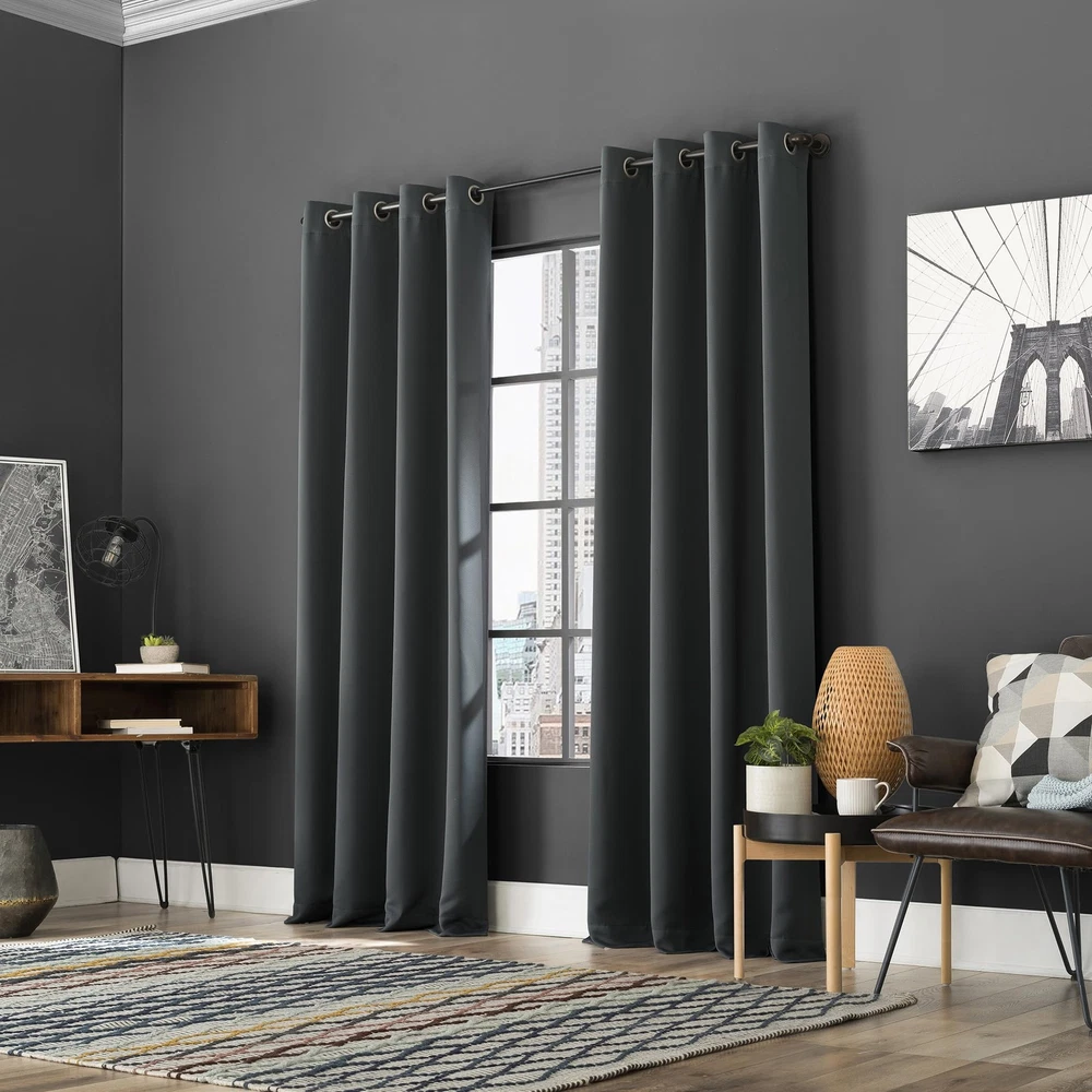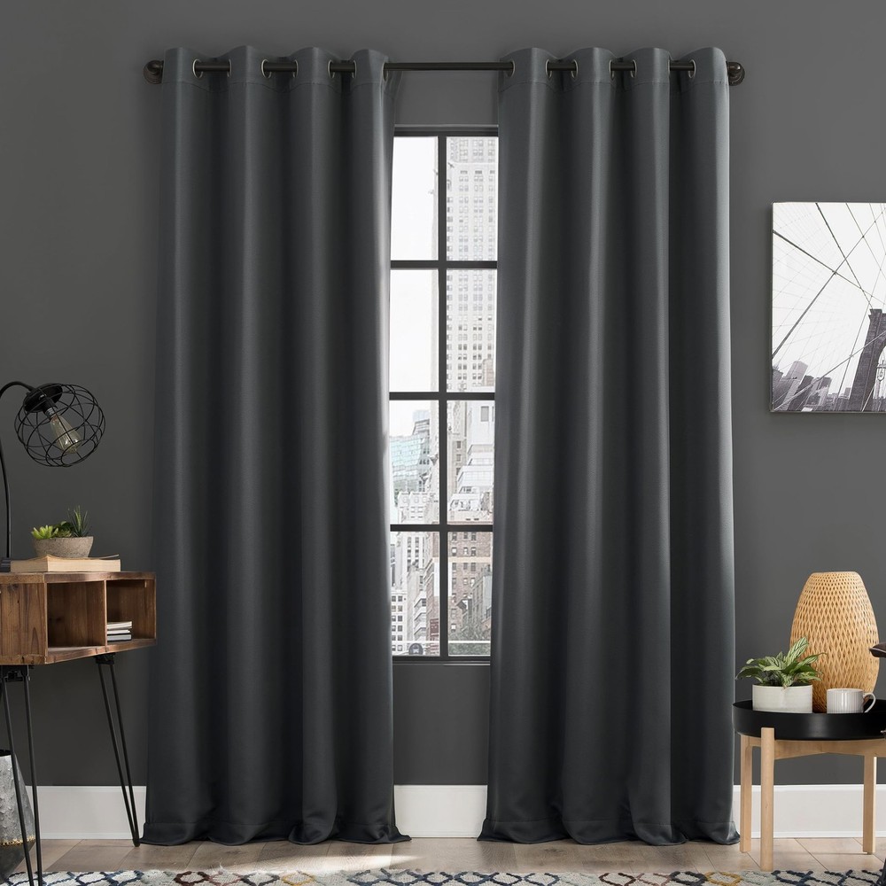 Soho Energy Saving Noise Reducing Blackout Grommet Curtain Panel Pairs infuse a modern sophistication into any living space. Equipped with built-in metal grommets for easy hanging on standard curtain rods up to 1.5" in diameter. Blackout technology blocks out most outside light, offers outside noise reduction by up to 30%, and decreases energy lost through your windows by up to 40%. Comfort is optimized with thermal properties that help keep summer heat and winter chill out of your home. Hang in your living room for enhanced privacy, or in your bedroom for a sounder, more uninterrupted sleep. Pair includes 2 panels, each measuring 54" width by 84" length. Measure carefully before selecting your desired size and quantity. Rod not included. Machine wash cold on gentle cycle. Use non-chlorine bleach when needed. Tumble dry on low heat, using a cool iron as needed. Blackout technology blocks out most unwanted light while enhancing privacy Energy efficient design reduces energy lost through your windows by up to 40% Thermal properties help keep summer heat and winter chill out of your home Noise reduction up to 30% helps you get a sounder, more uninterrupted sleep Built-in metal grommets fit curtain rods up to 1.5" in diameter Pair includes 2 panels