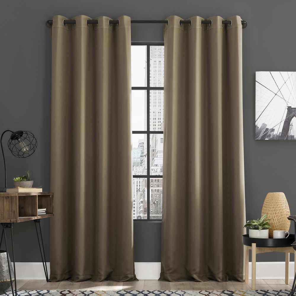 Soho Energy Saving Noise Reducing Blackout Grommet Curtain Panel Pairs infuse a modern sophistication into any living space. Equipped with built-in metal grommets for easy hanging on standard curtain rods up to 1.5" in diameter. Blackout technology blocks out most outside light, offers outside noise reduction by up to 30%, and decreases energy lost through your windows by up to 40%. Comfort is optimized with thermal properties that help keep summer heat and winter chill out of your home. Hang in your living room for enhanced privacy, or in your bedroom for a sounder, more uninterrupted sleep. Pair includes 2 panels, each measuring 54" width by 96" length. Measure carefully before selecting your desired size and quantity. Rod not included. Machine wash cold on gentle cycle. Use non-chlorine bleach when needed. Tumble dry on low heat, using a cool iron as needed. Blackout technology blocks out most unwanted light while enhancing privacy Energy efficient design reduces energy lost through your windows by up to 40% Thermal properties help keep summer heat and winter chill out of your home Noise reduction up to 30% helps you get a sounder, more uninterrupted sleep Built-in metal grommets fit curtain rods up to 1.5" in diameter Pair includes 2 panels
