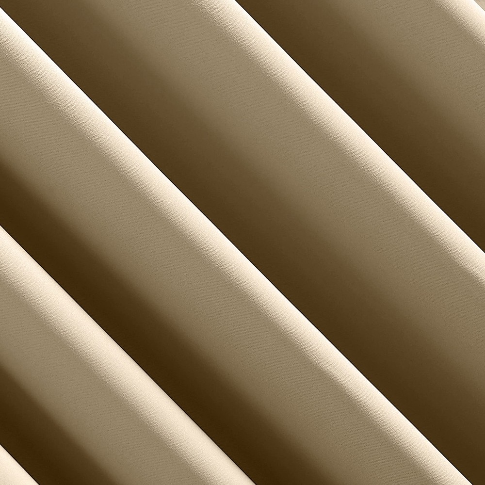 Soho Energy Efficient Blackout Grommet Curtain Panel Pairs infuse a modern sophistication into any living space. Equipped with built-in metal grommets for easy hanging on standard curtain rods up to 1.5" in diameter. Blackout technology blocks out most outside light, offers outside noise reduction by up to 30%, and decreases energy lost through your windows by up to 40%. Comfort is optimized with thermal properties that help keep summer heat and winter chill out of your home. Hang in your living room for enhanced privacy, or in your bedroom for a sounder, more uninterrupted sleep. Pair includes 2 taupe panels, each measuring 54" width by 84" length. Measure carefully before selecting your desired size and quantity. Rod not included. Machine wash cold on gentle cycle. Use non-chlorine bleach when needed. Tumble dry on low heat, using a cool iron as needed. Blackout technology blocks out most unwanted light while enhancing privacy Energy efficient design reduces energy lost through your windows by up to 40% Thermal properties help keep summer heat and winter chill out of your home Noise reduction up to 30% helps you get a sounder, more uninterrupted sleep Built-in metal grommets fit curtain rods up to 1.5" in diameter Pair includes 2 panels